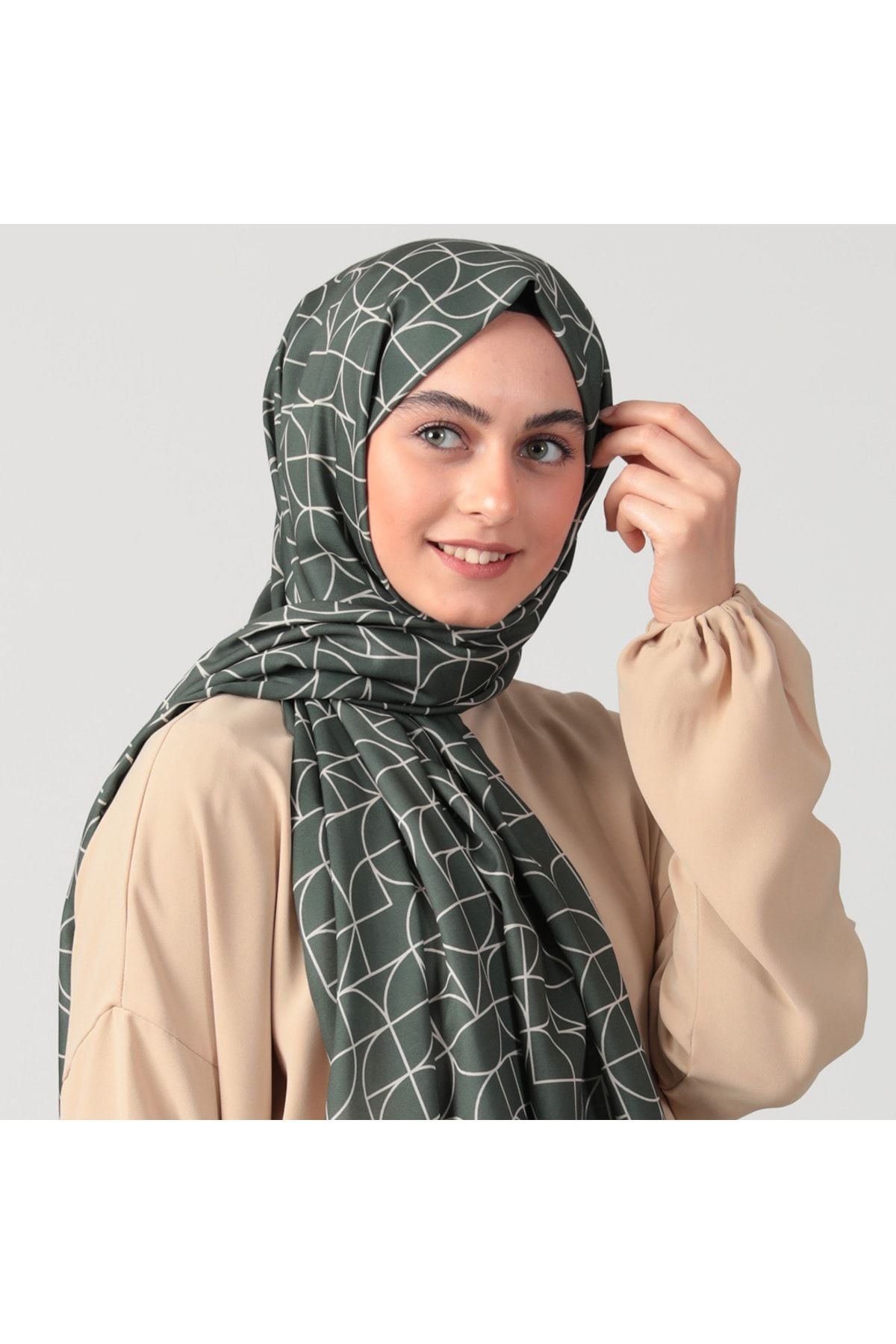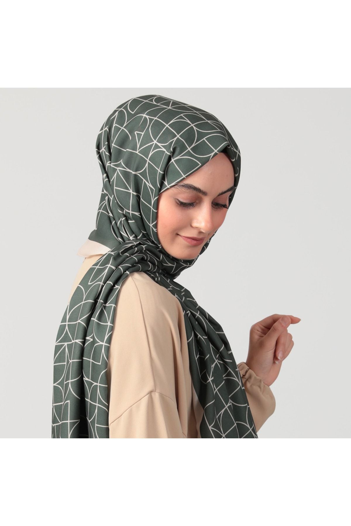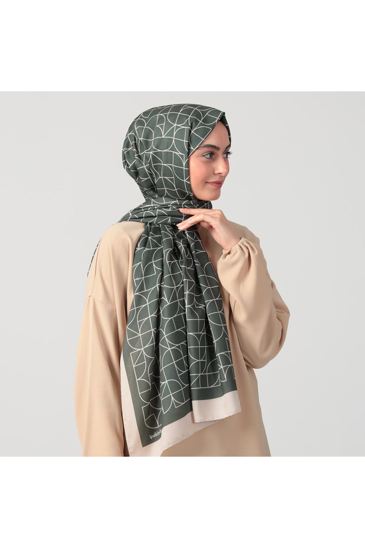 PAMUK IPEK ŞAL - GEOMETRİK DESEN - HAKİ