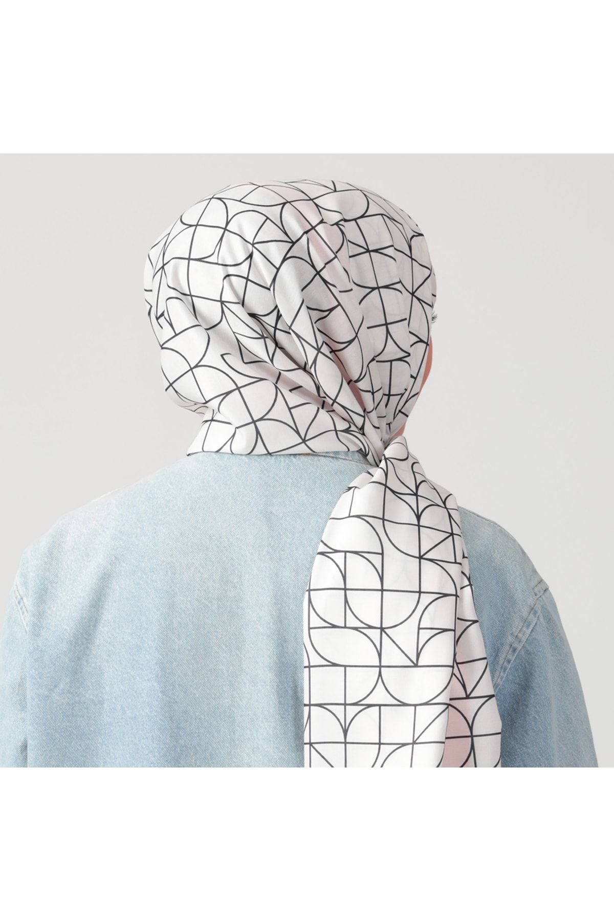 • Pamuk Ipek Şal - Geometrik Desen - Nar Çiçeği