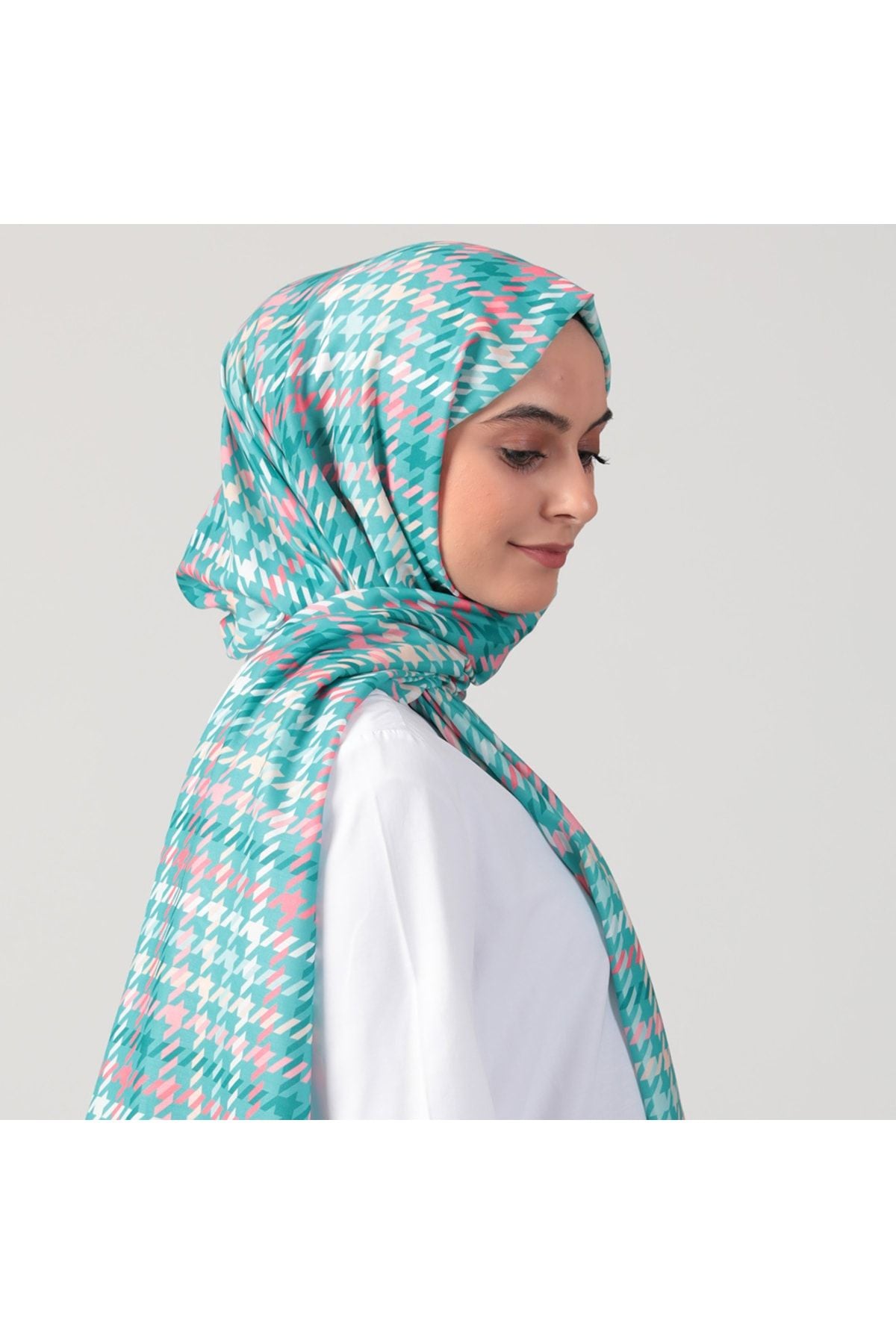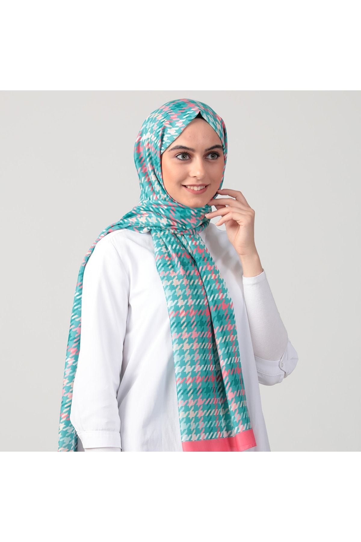 • Pamuk Ipek Şal - Kazayağı Desen - Şeker Pembe