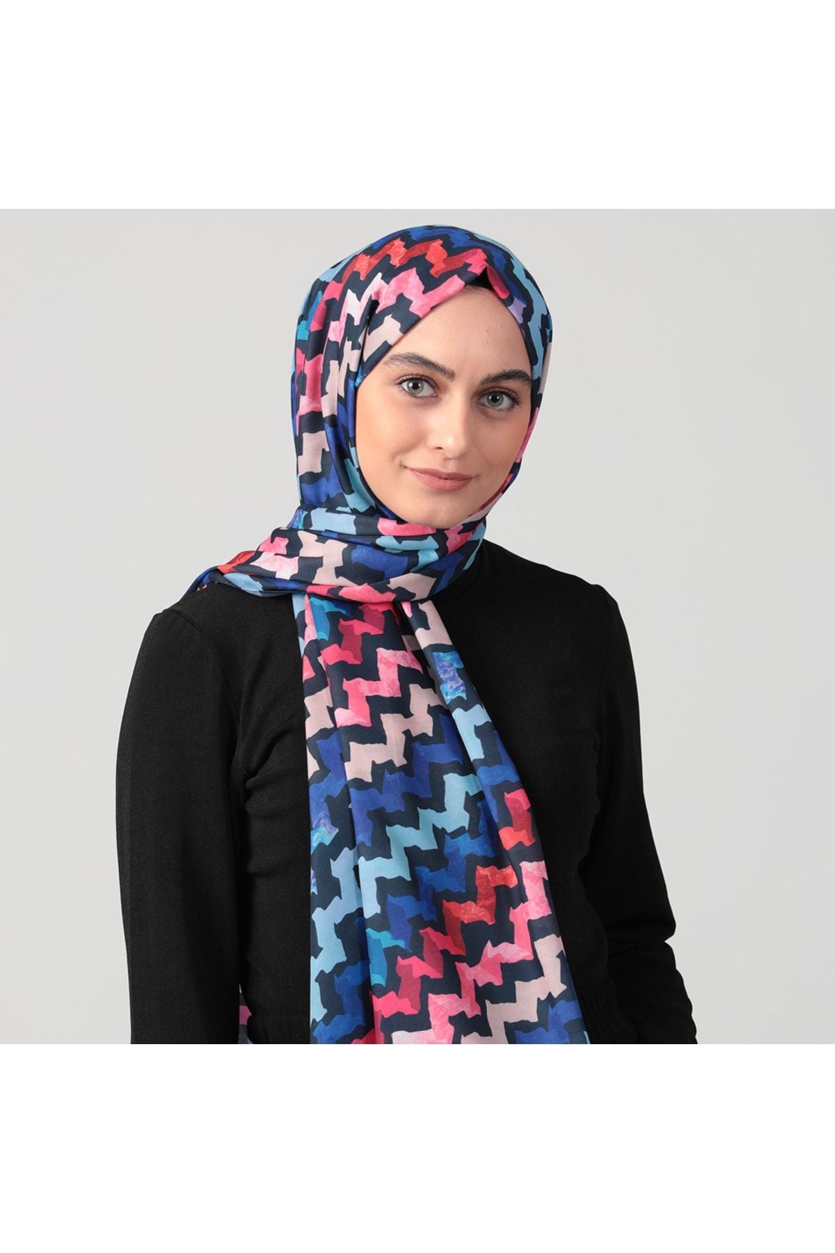 • Pamuk Ipek Şal - Zigzag Desen - Laci Fuşya