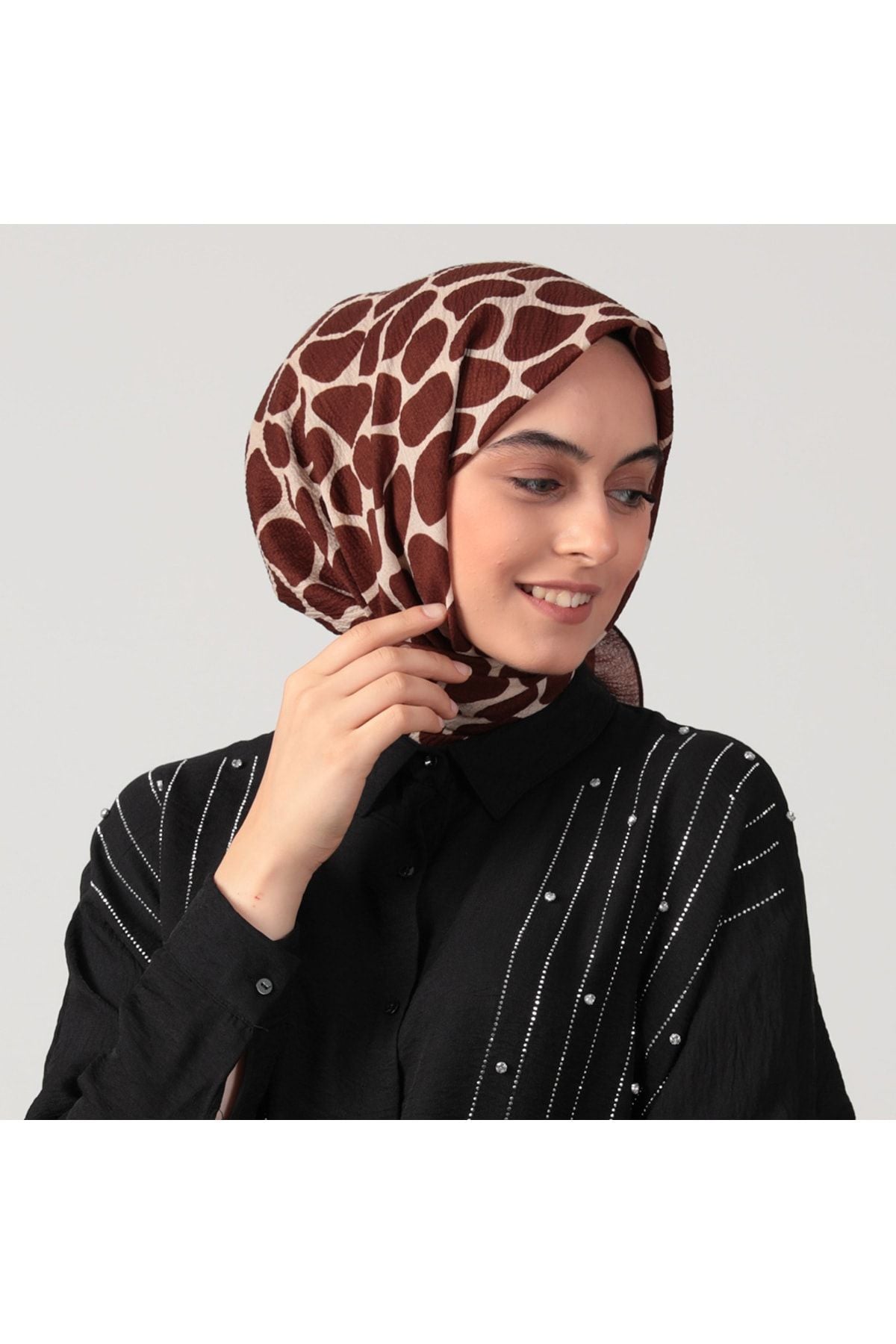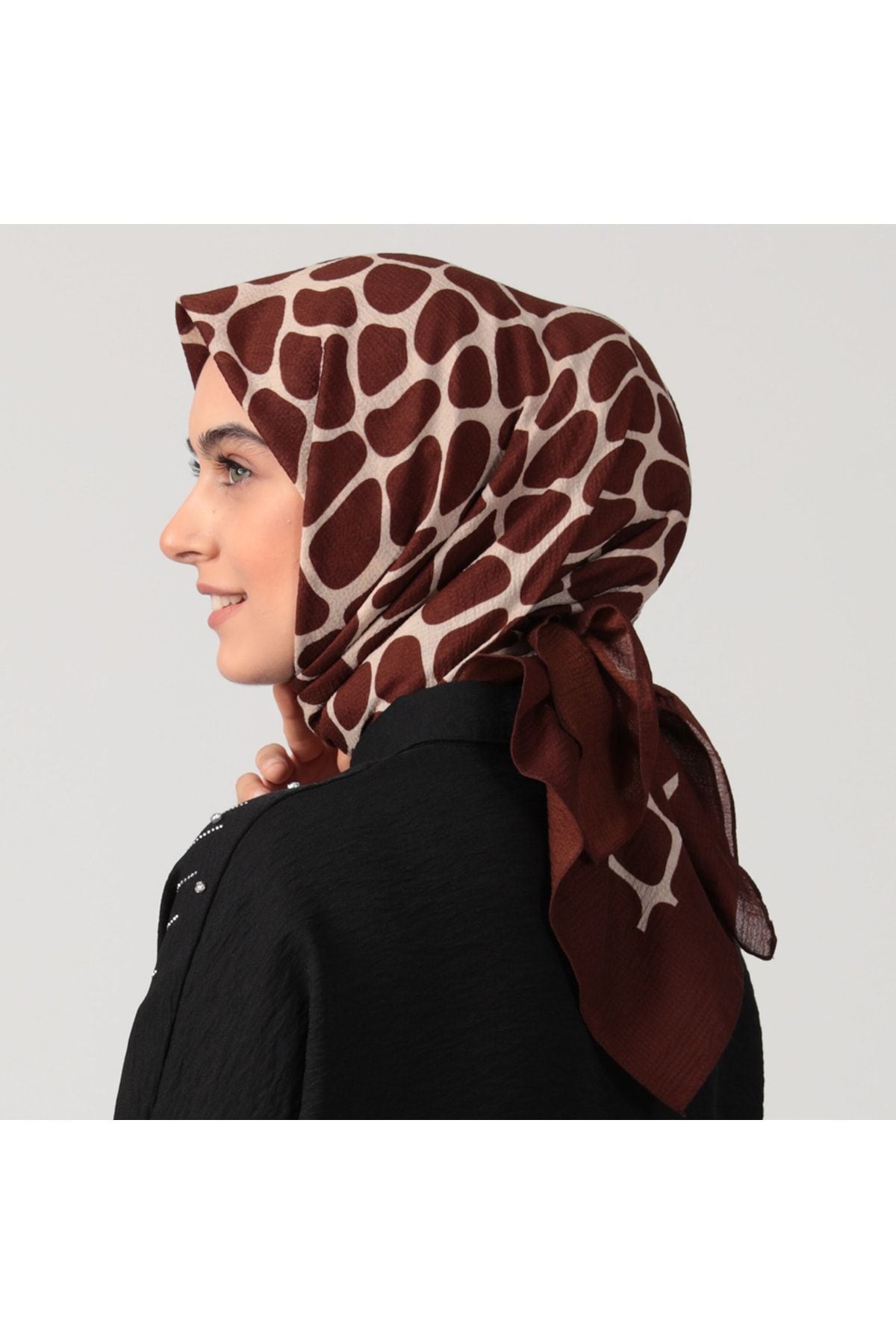 PAMUKLU BÜRÜMCÜK EŞARP - MOZAİK DESEN - KAHVERENGİ