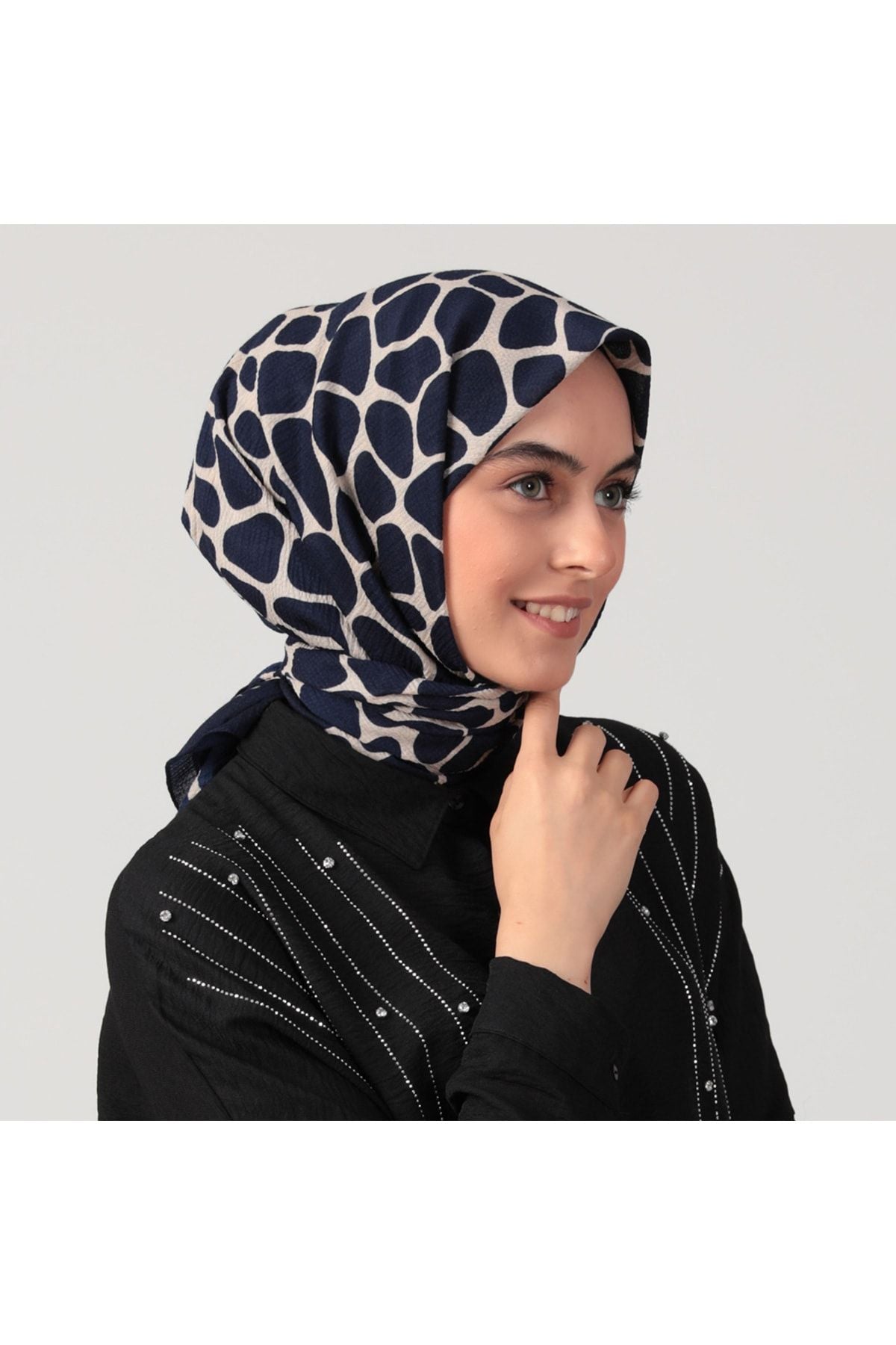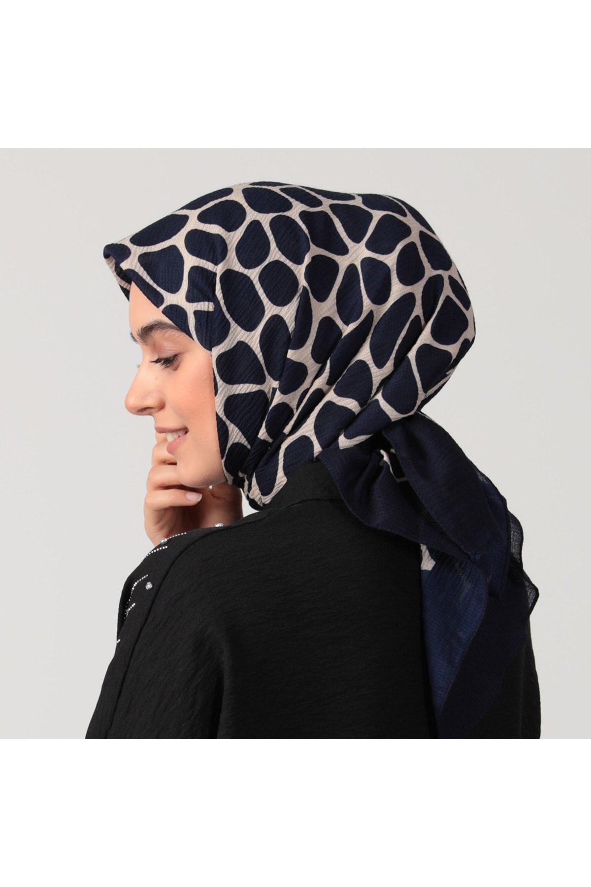 Pamuklu Bürümcük Eşarp - Mozaik Desen - Lacivert