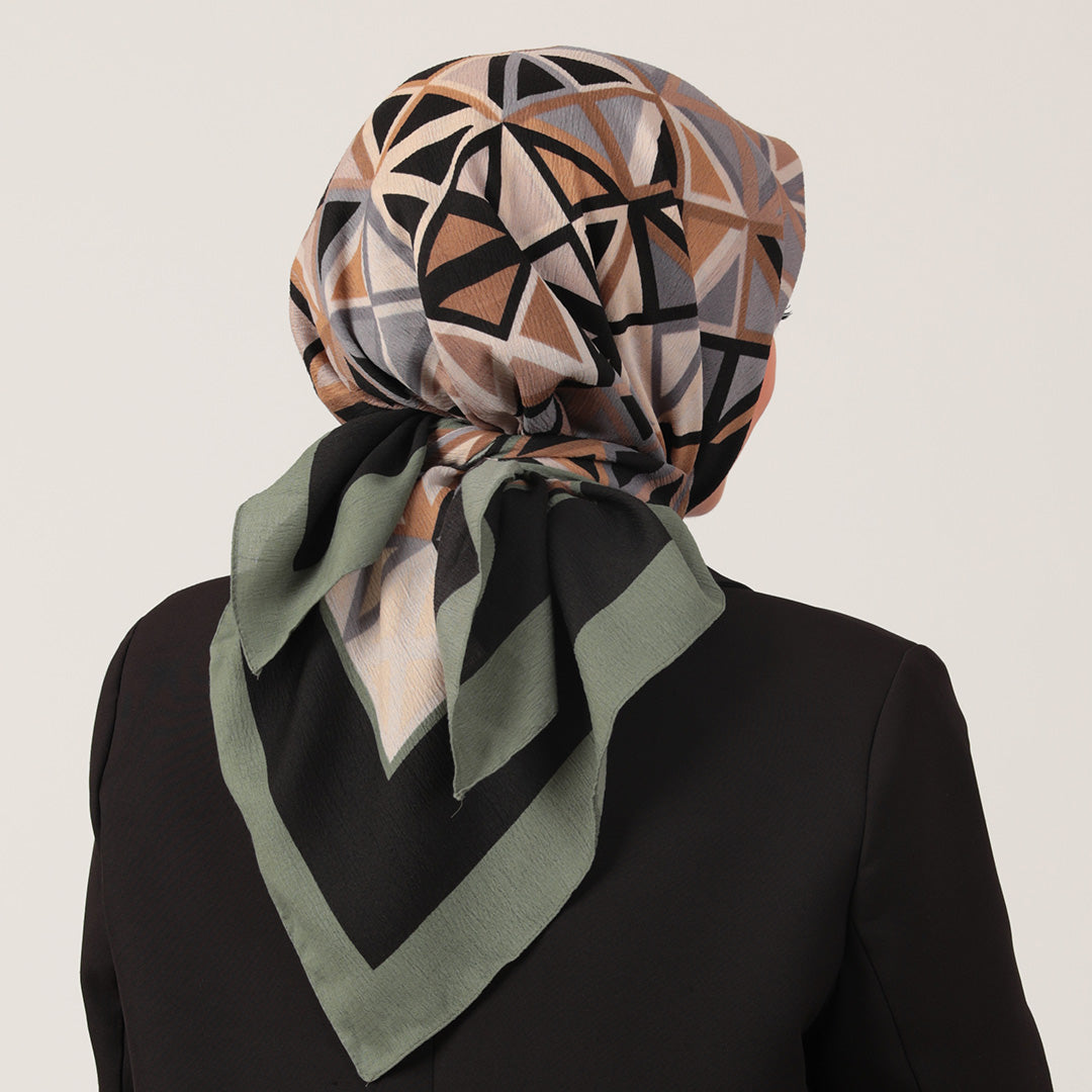 Pamuklu Bürümcük Eşarp - Prizma Desen - Haki Yeşili