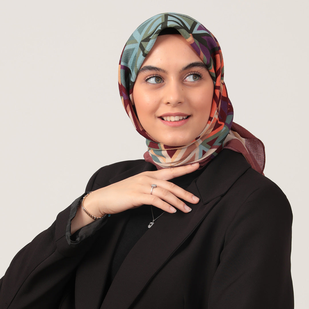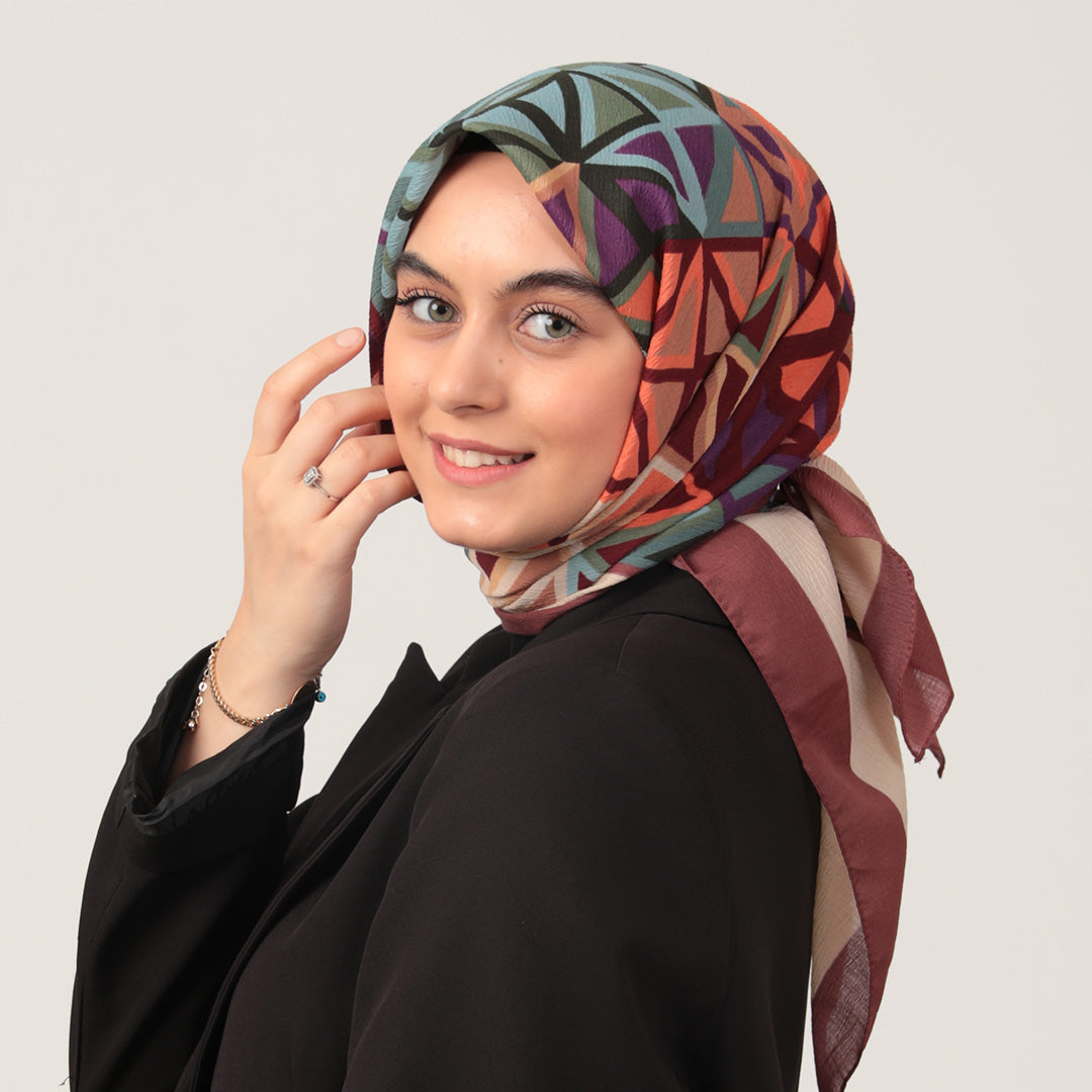 PAMUKLU BÜRÜMCÜK EŞARP - PRİZMA DESEN - KİREMİT