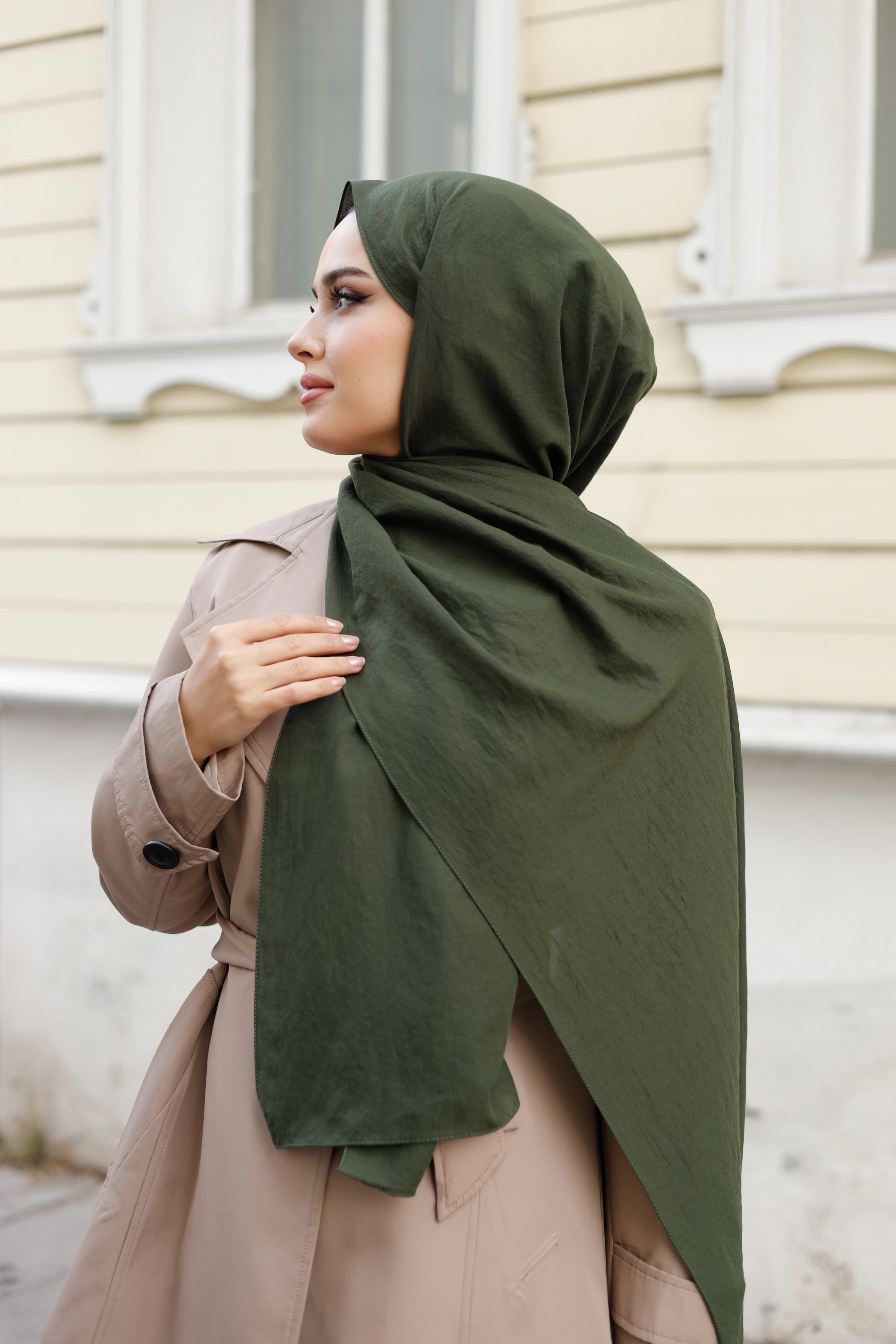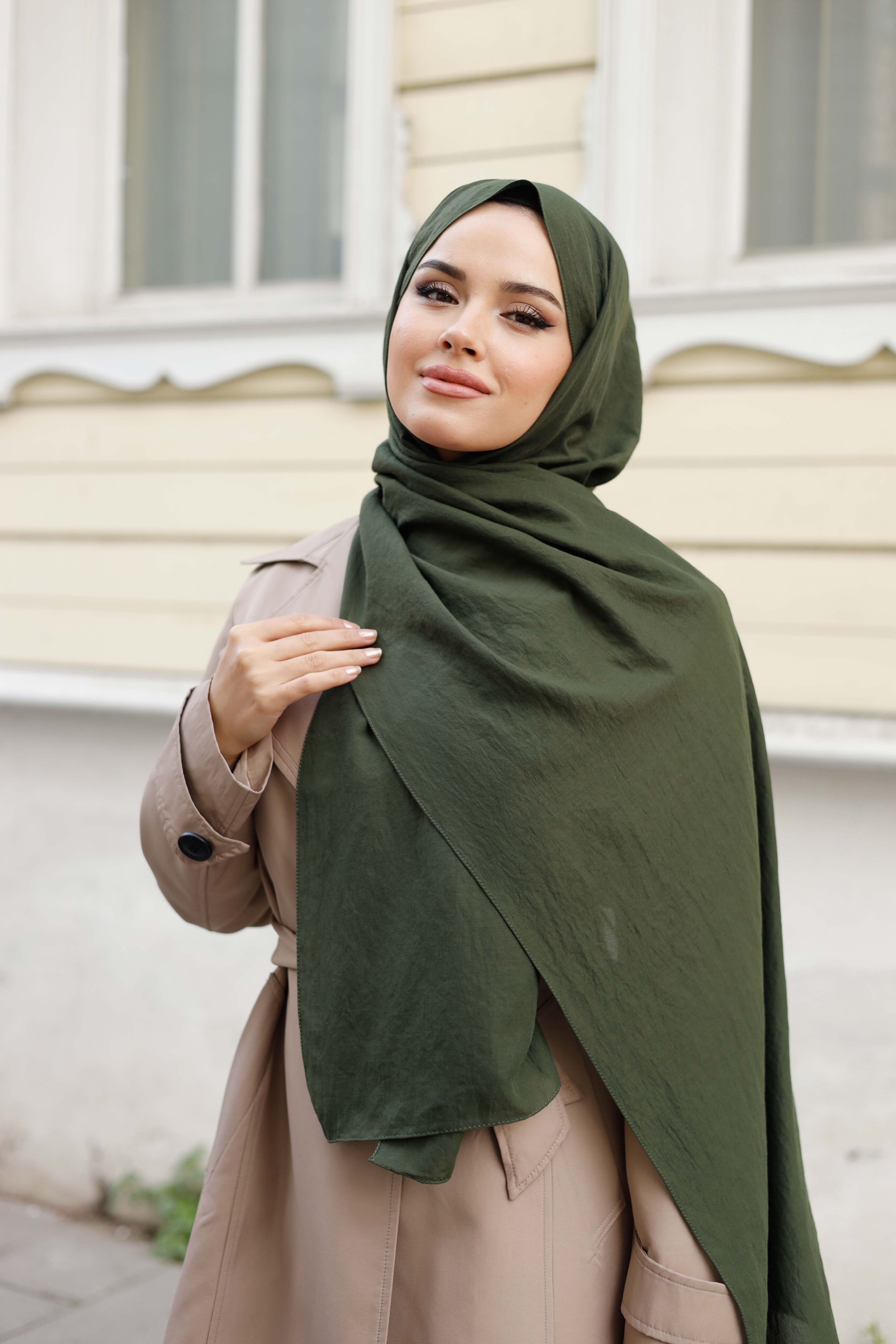 Soft Jakar Şal Düz Haki Yeşili