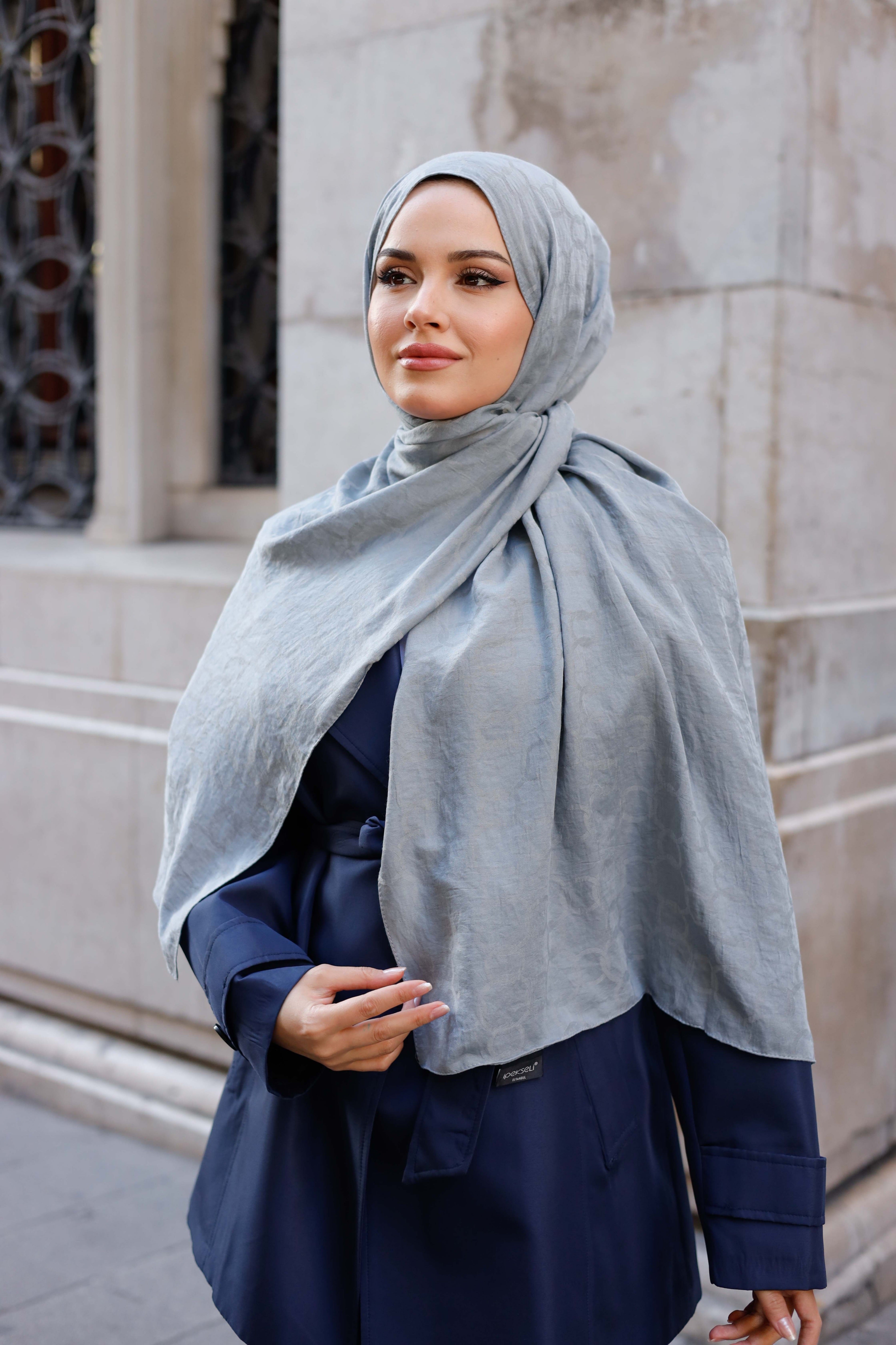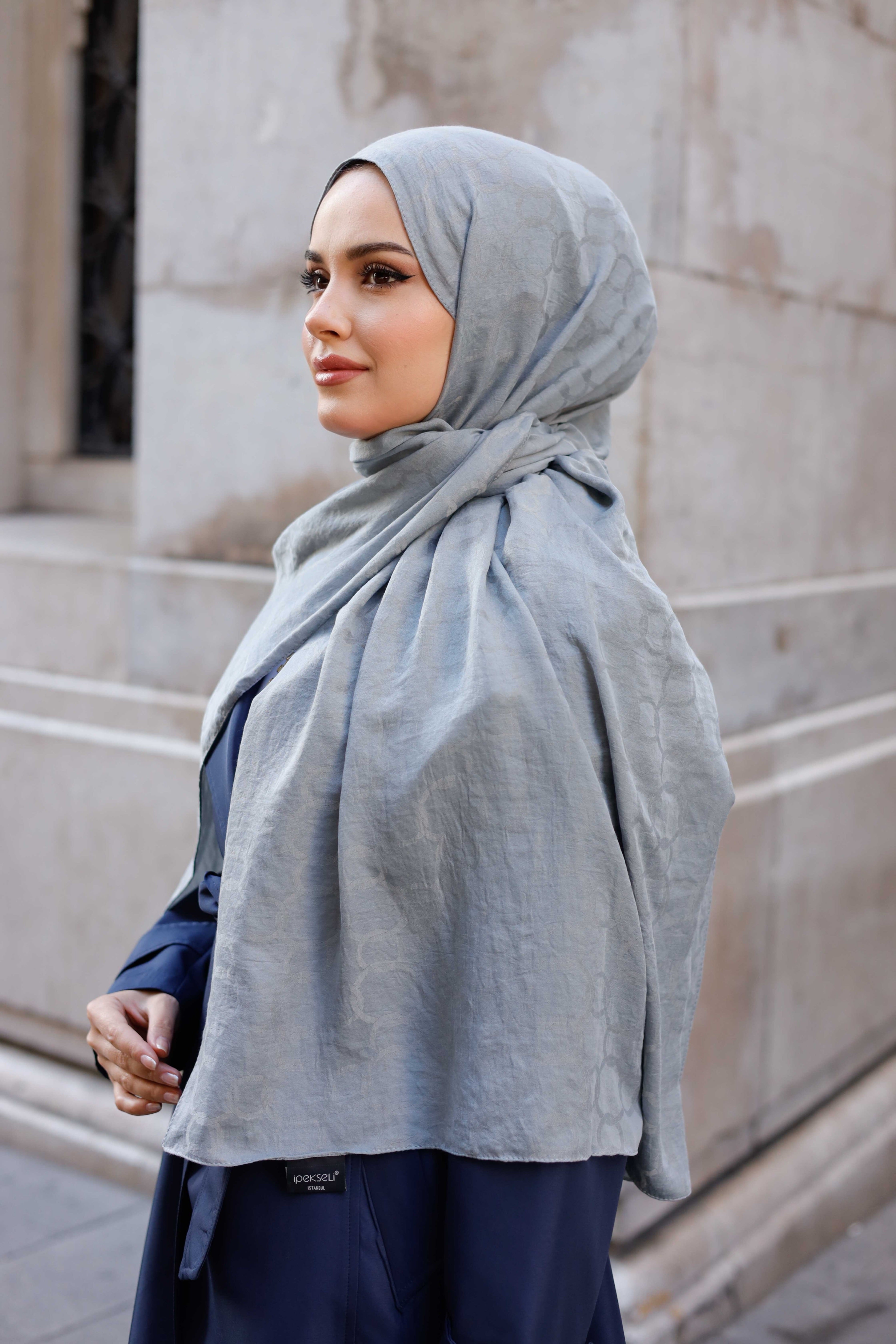 • Soft Jakar Şal - Zincir Desen - Gümüş