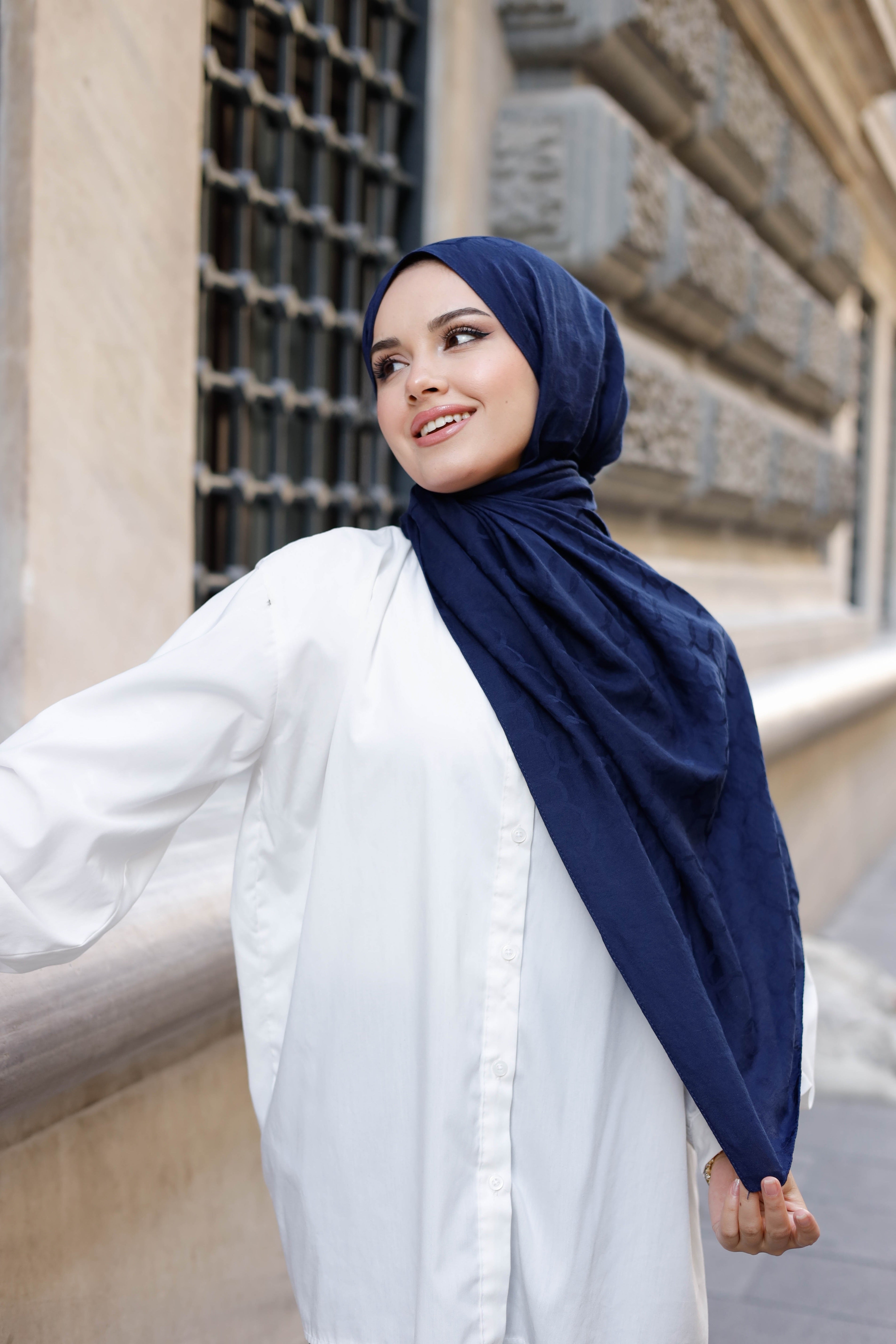• Soft Jakar Şal - Zincir Desen - Lacivert