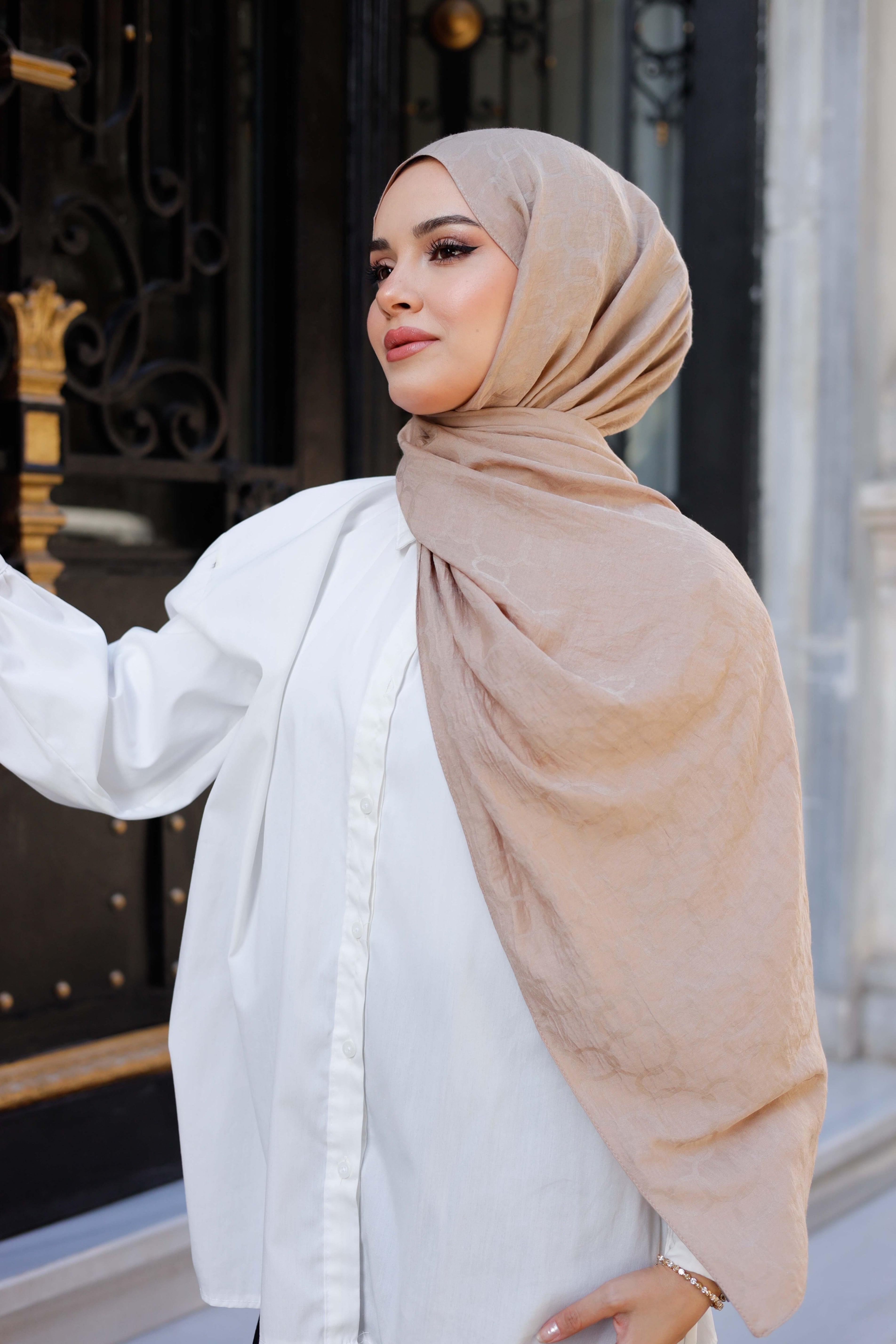 • Soft Jakar Şal - Zincir Desen - Sütlü Kahve