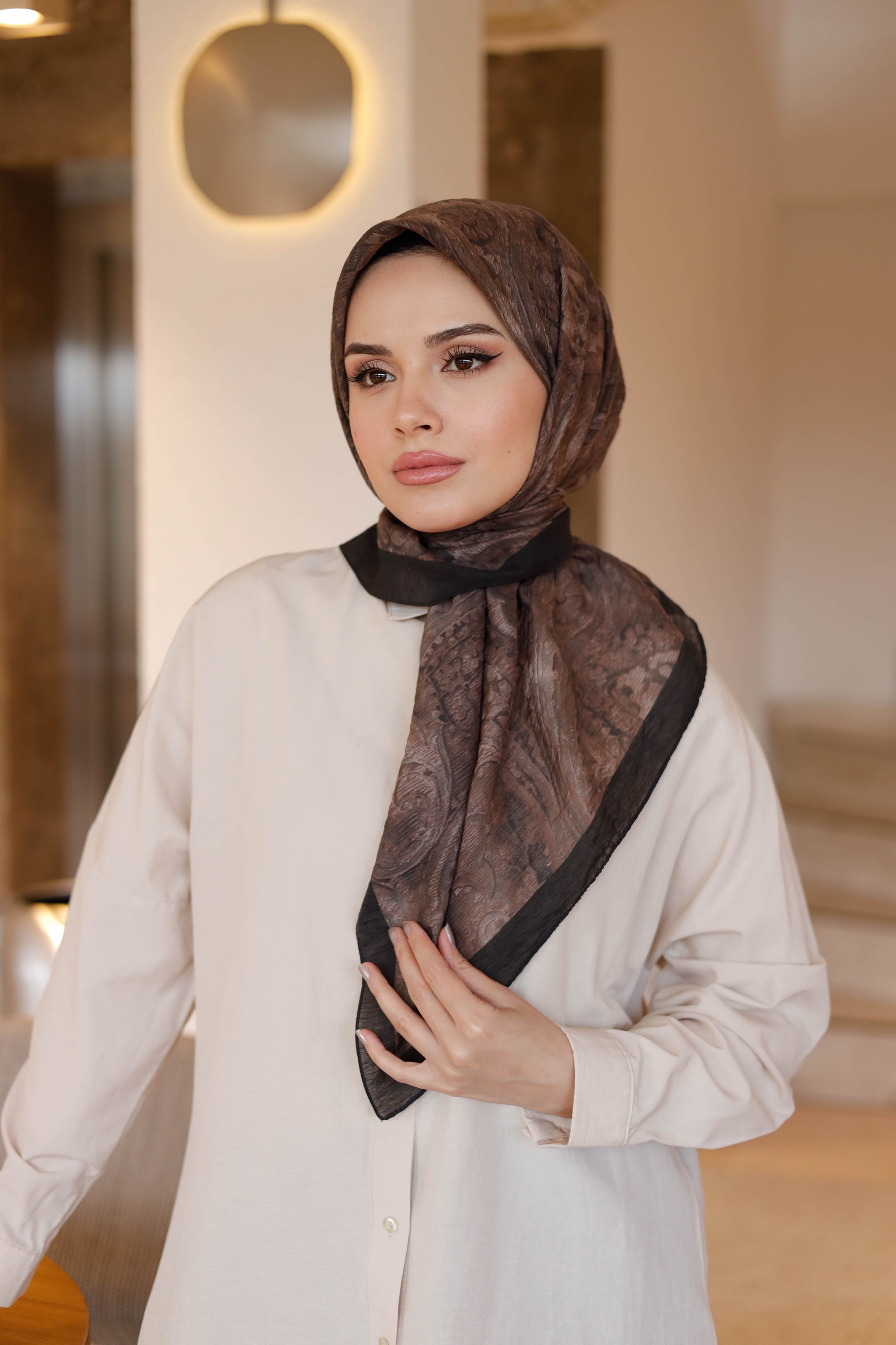 Etnik Desen Tensel Eşarp Kahverengi