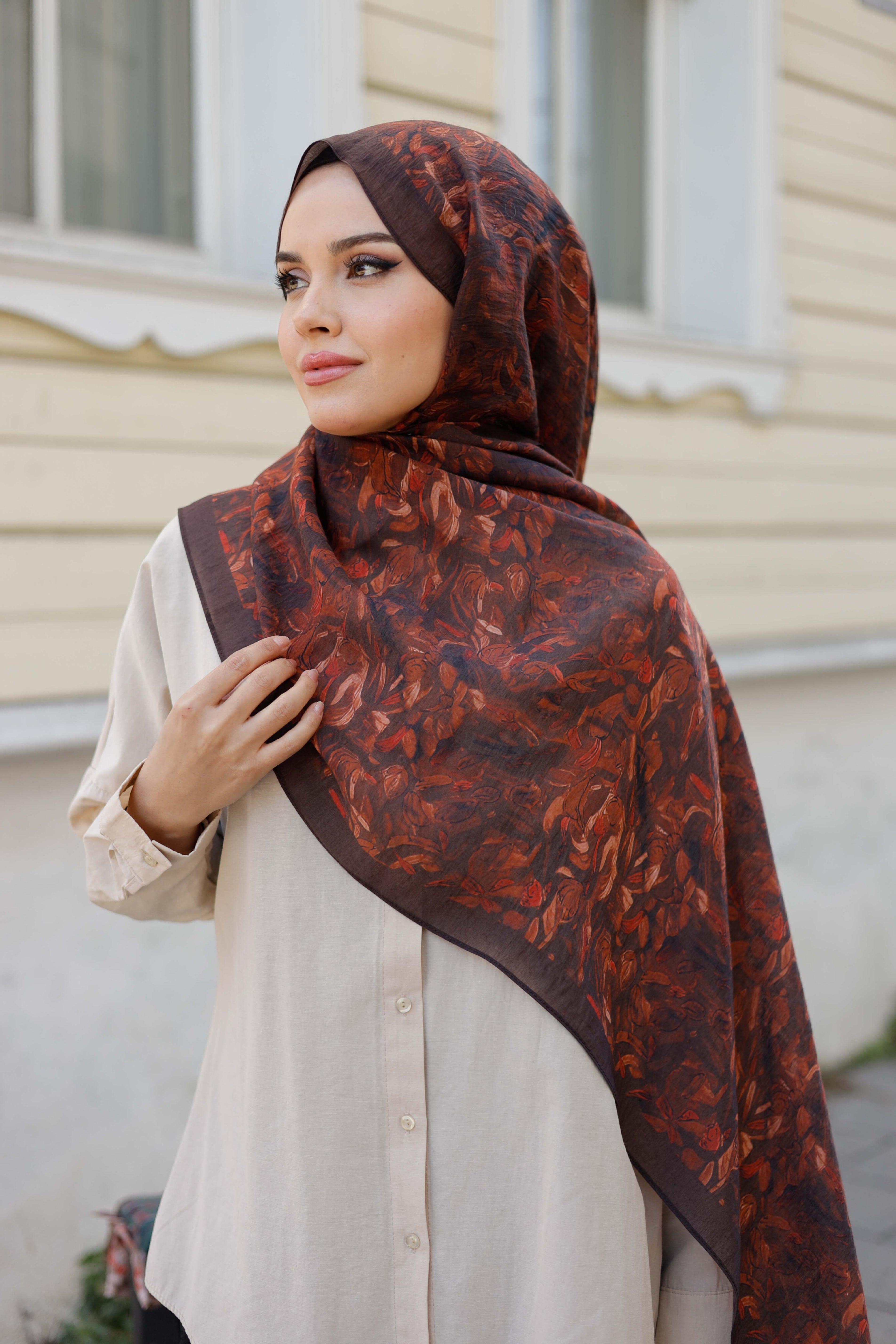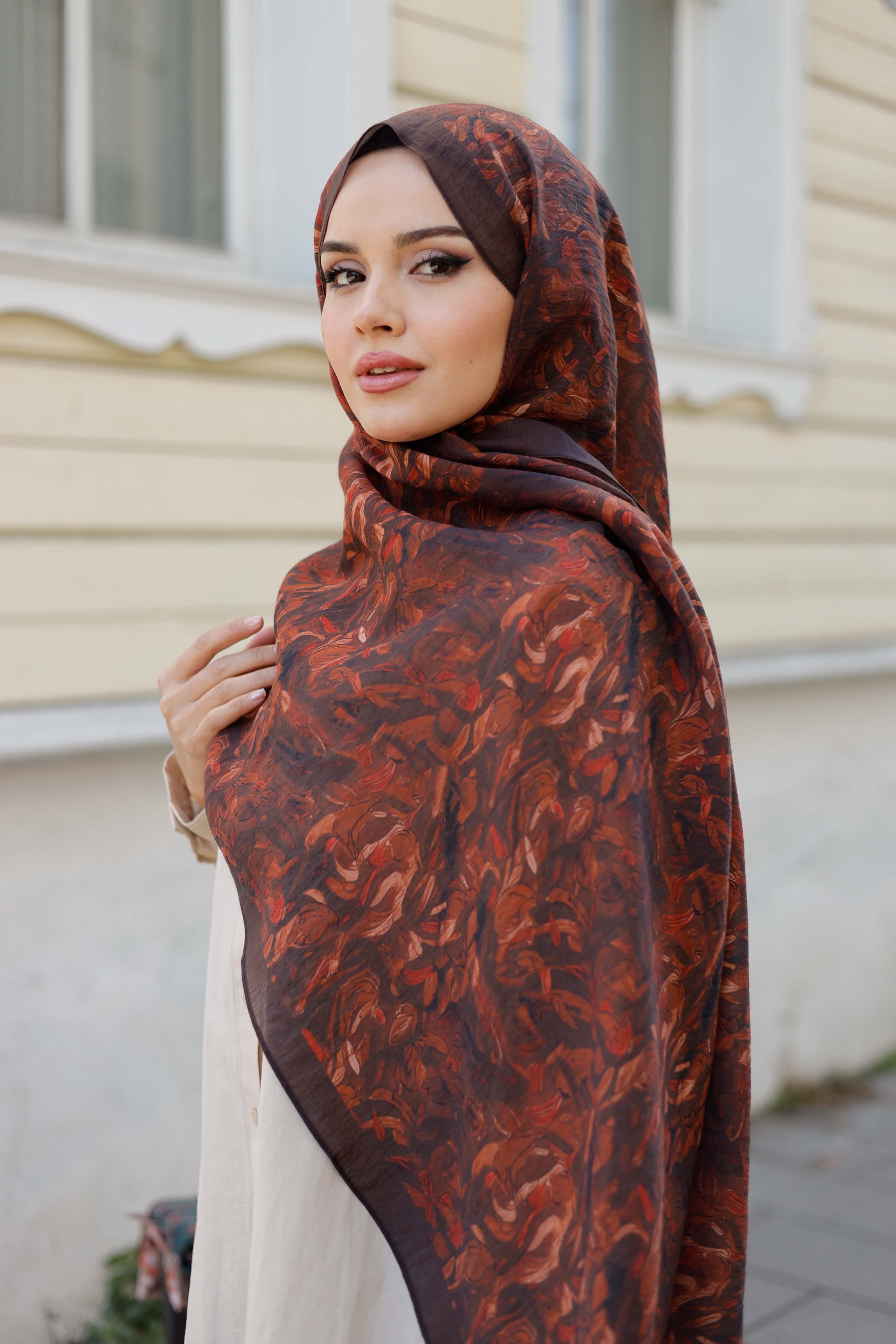 Yaprak Desen Tensel Şal Kahve Kiremit