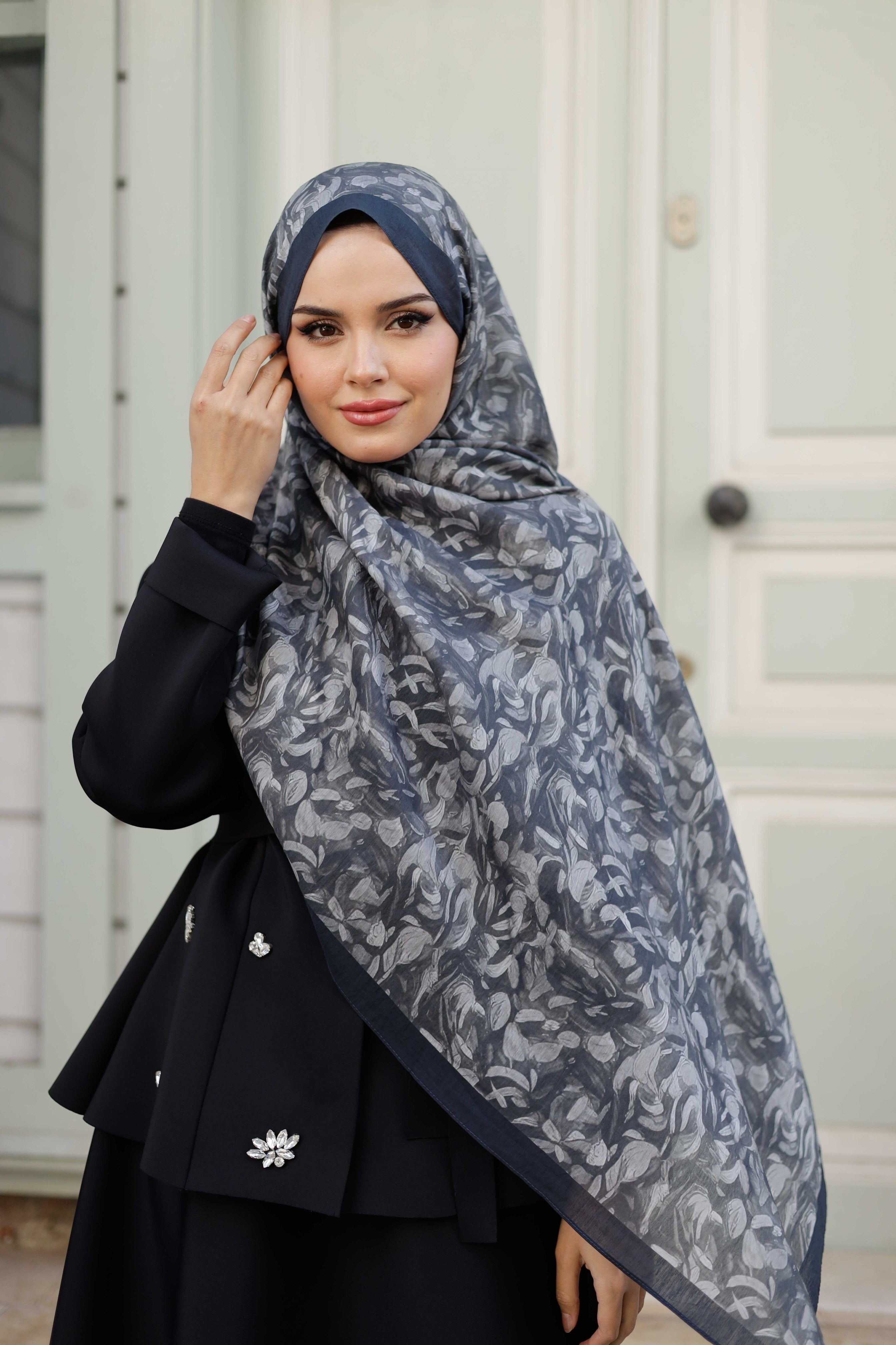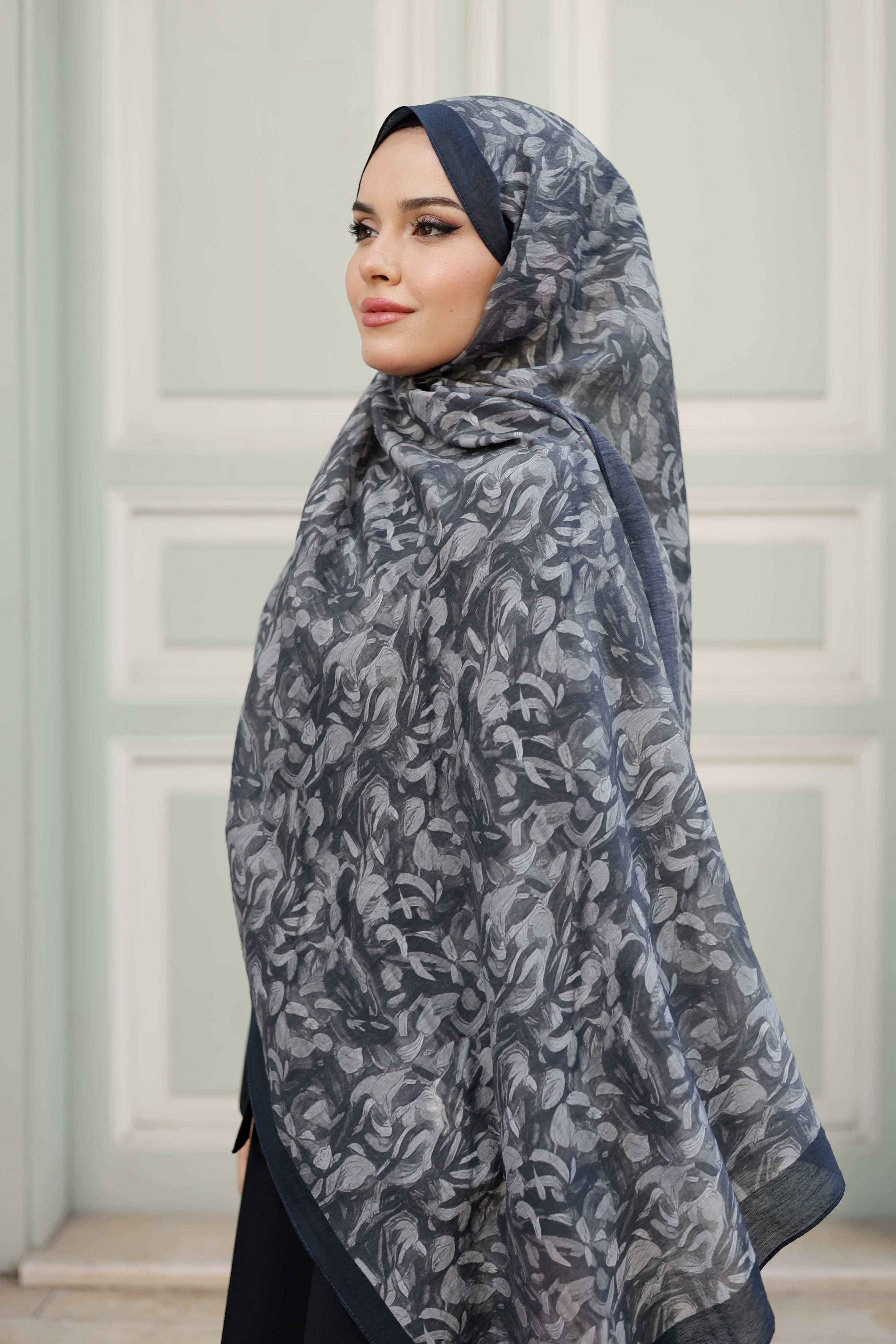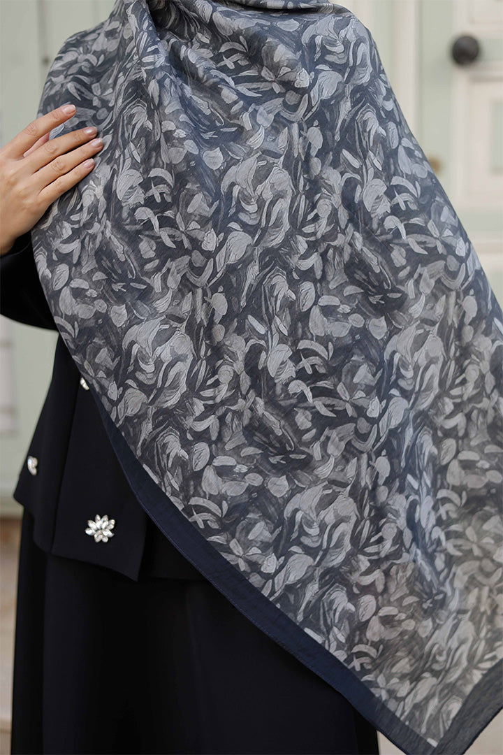 Yaprak Desen Tensel Şal Siyah