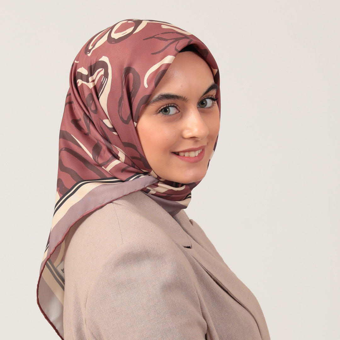 • Twill Eşarp - İlkbahar Desen - Çikolata Kahve