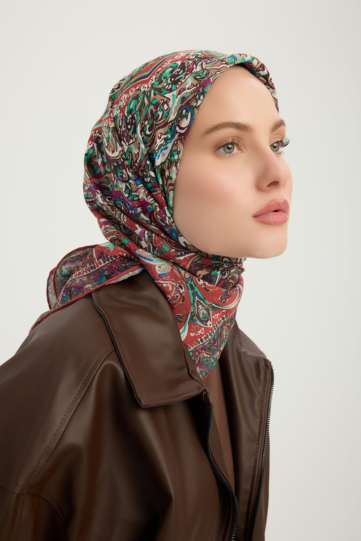 Vierra Desenli Eşarp Ebedi Saraylar Kırmızı