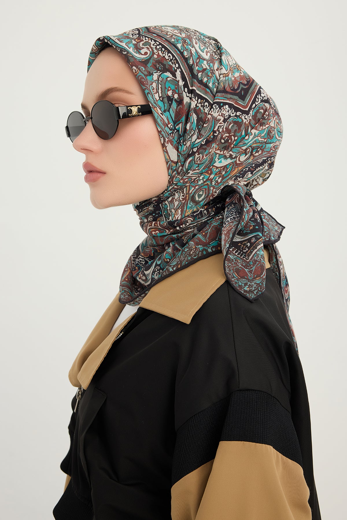 Vierra Desenli Eşarp Ebedi Saraylar Zümrüt Kahve