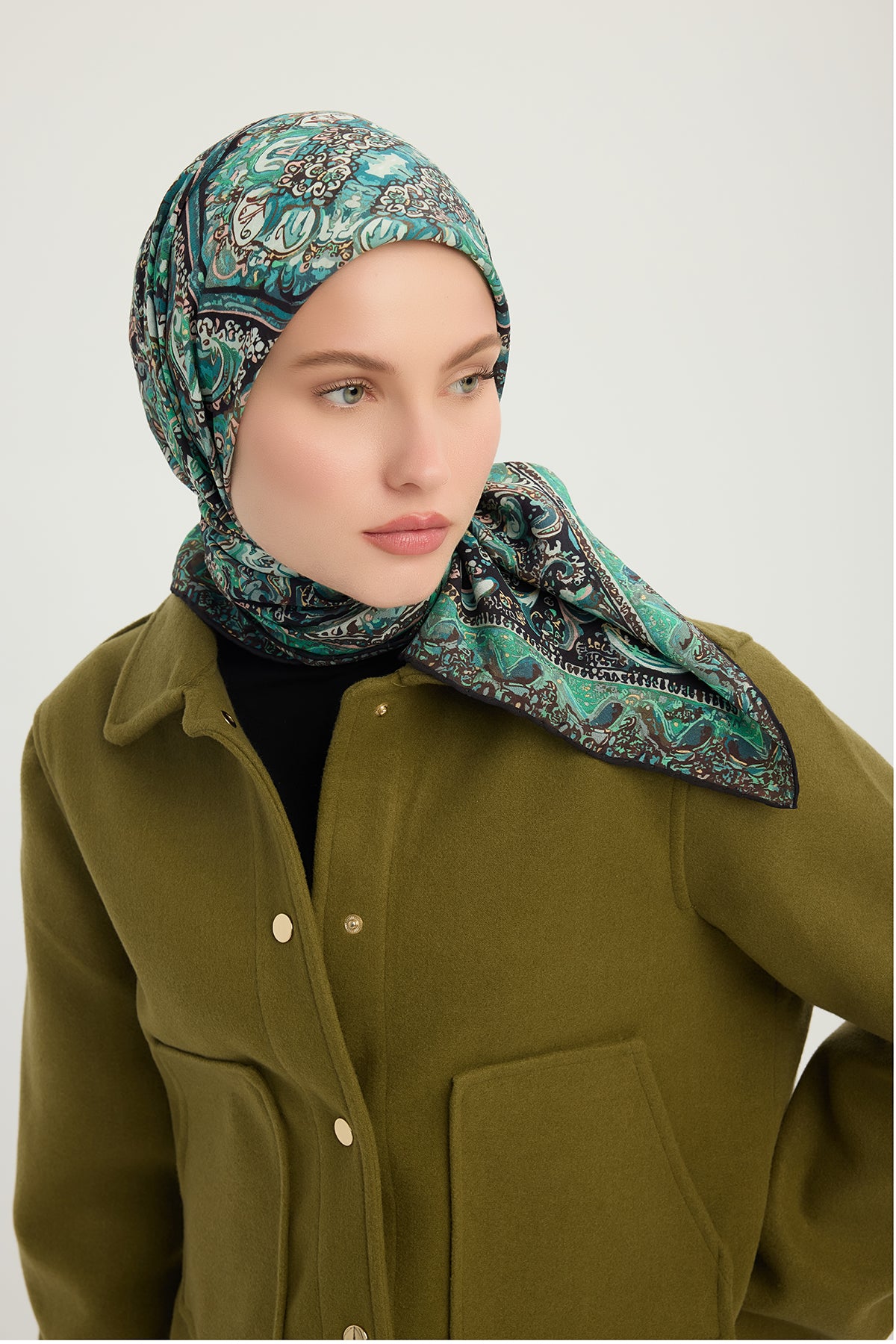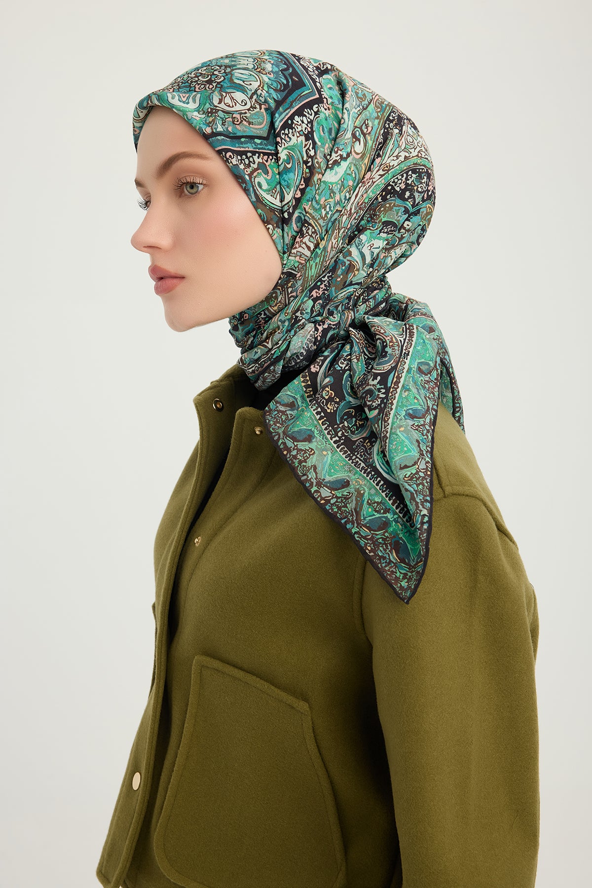 Vierra Desenli Eşarp Ebedi Saraylar Zümrüt Yeşili