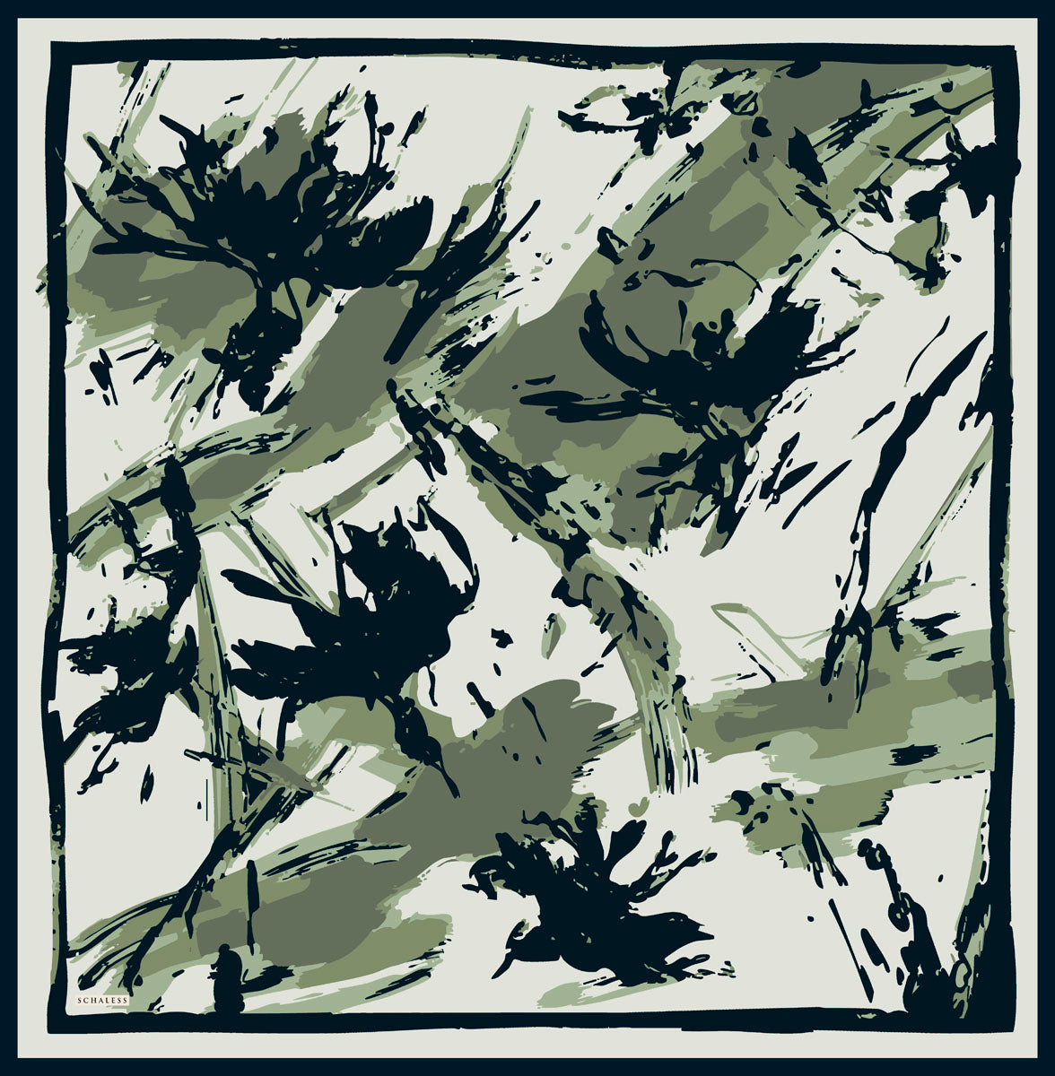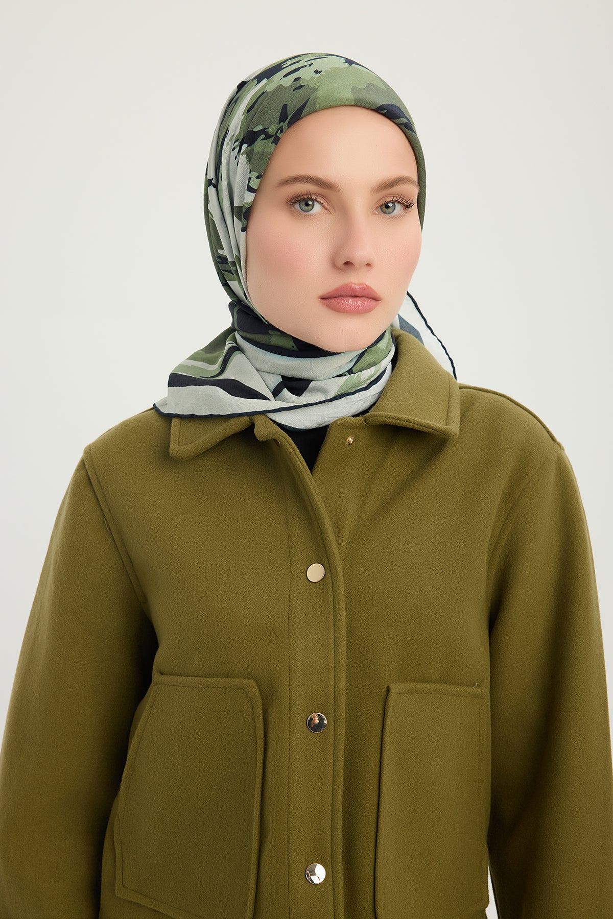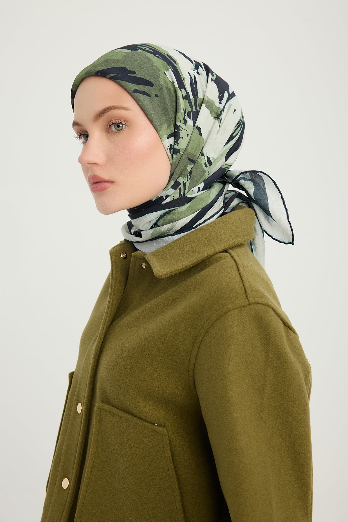Vierra Desenli Eşarp Özgür Fırçalar Haki Yeşili