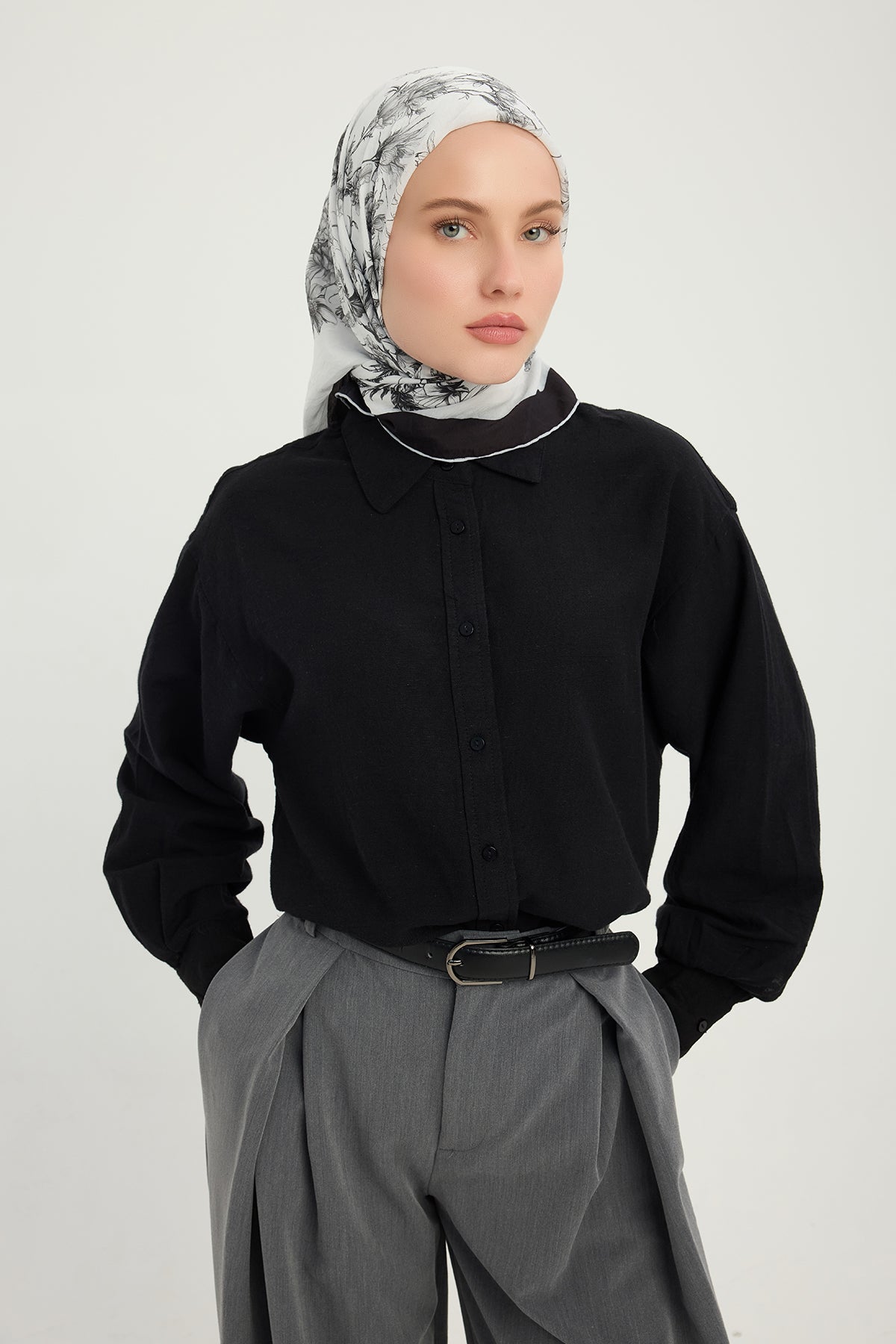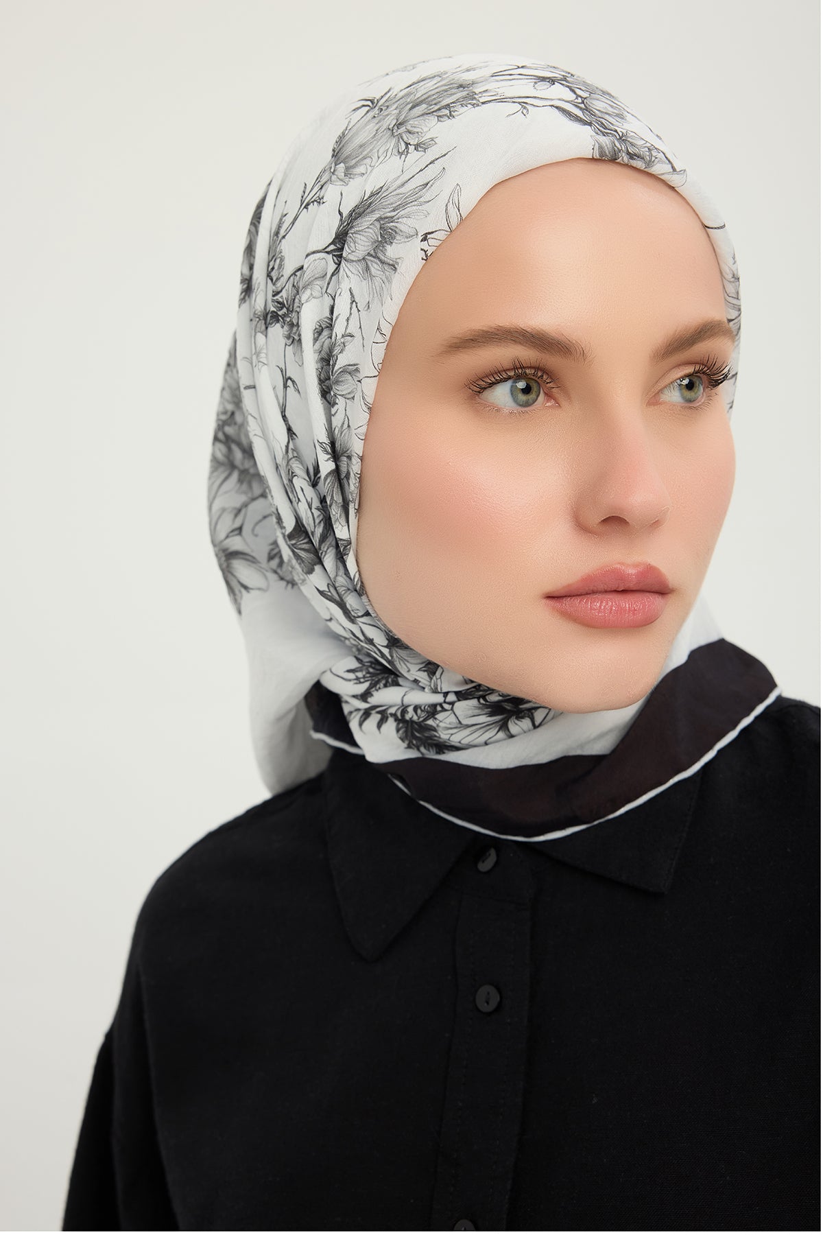 Vierra Desenli Eşarp Sessiz Botanik Gri