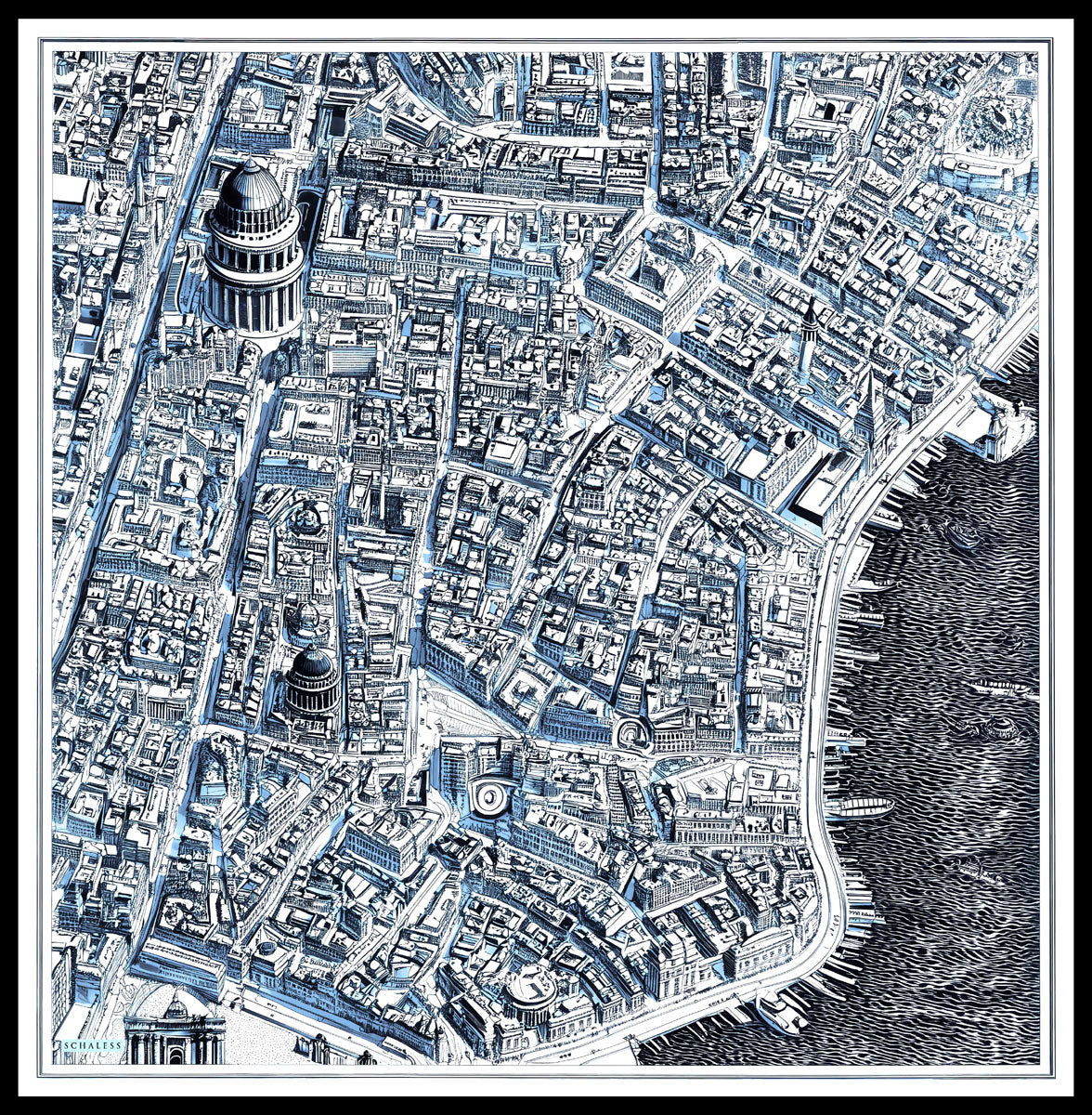 Vierra Desenli Eşarp Yankılar Şehri İndigo