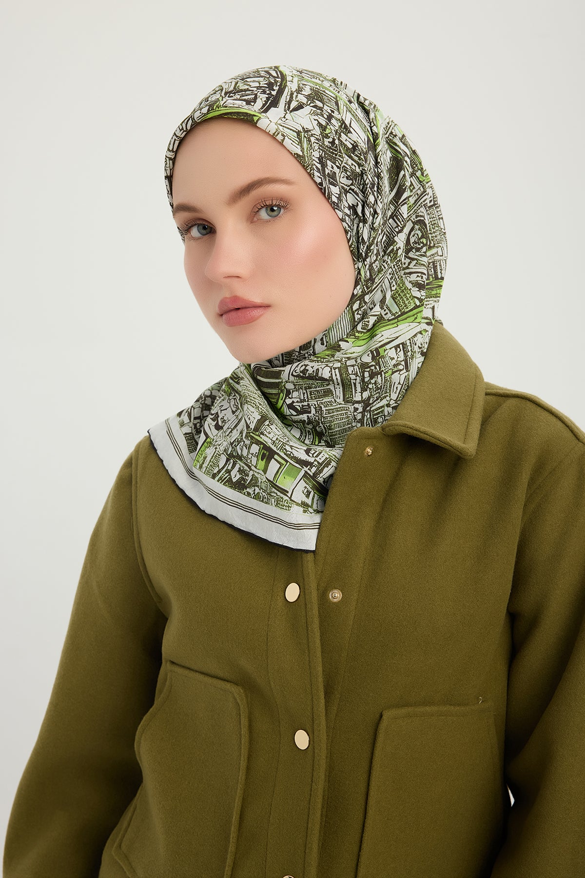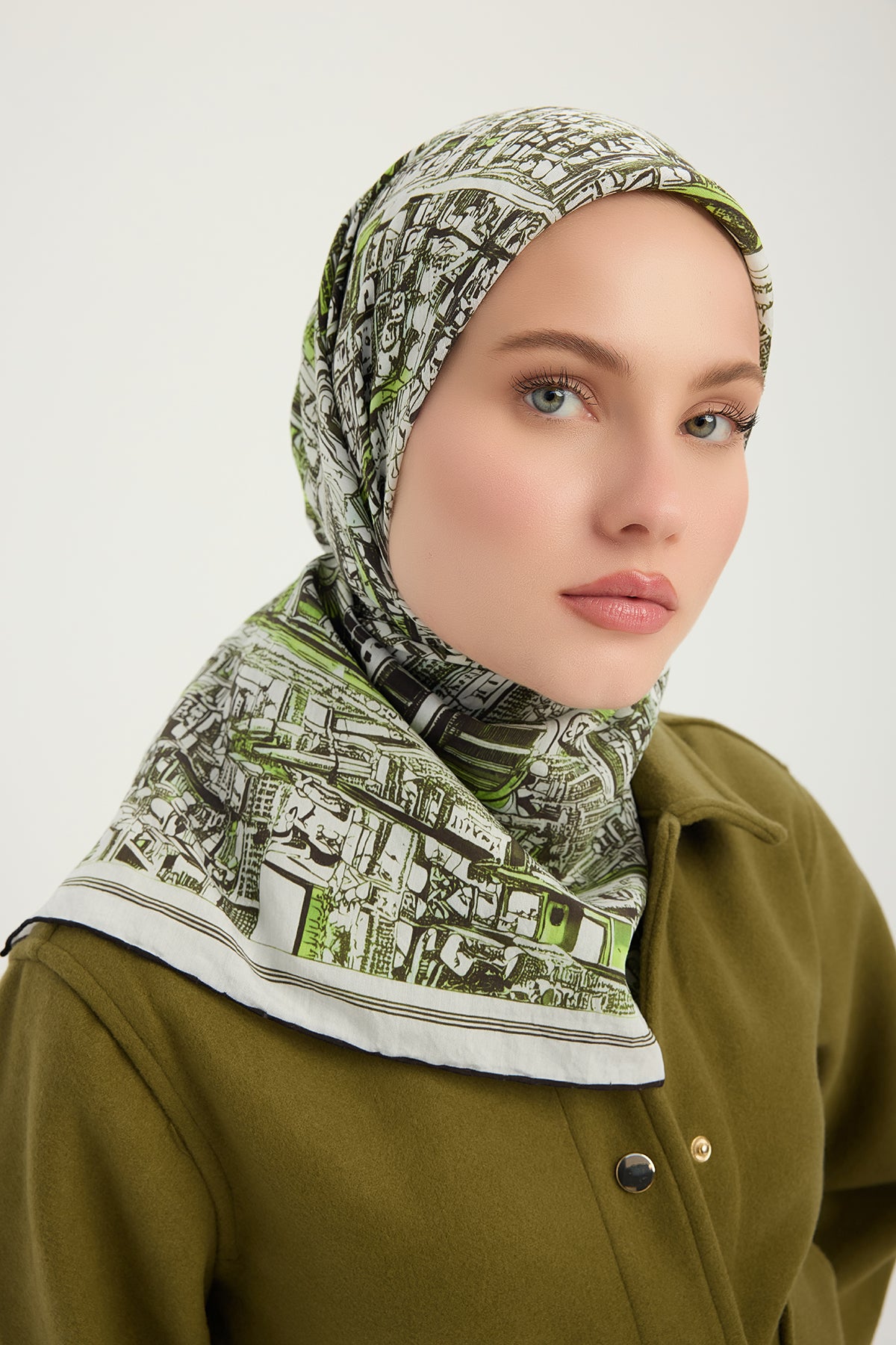 Vierra Desenli Eşarp Yankılar Şehri Yeşil