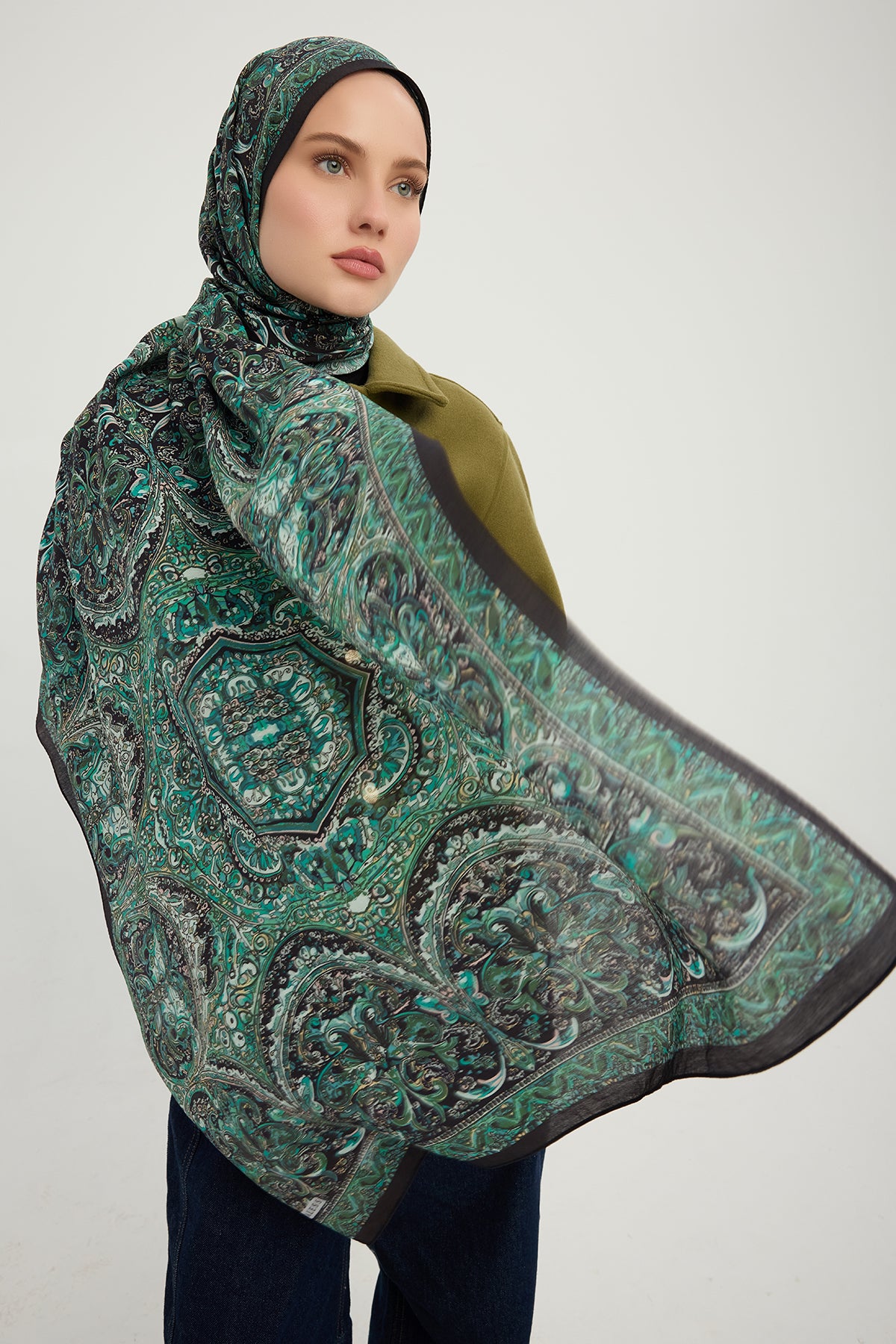 Vierra Desenli Şal Ebedi Saraylar Zümrüt Yeşili