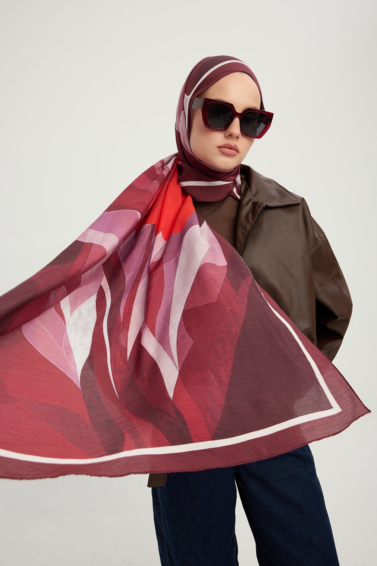 Vierra Desenli Şal Işıklı Çiçekler Bordo