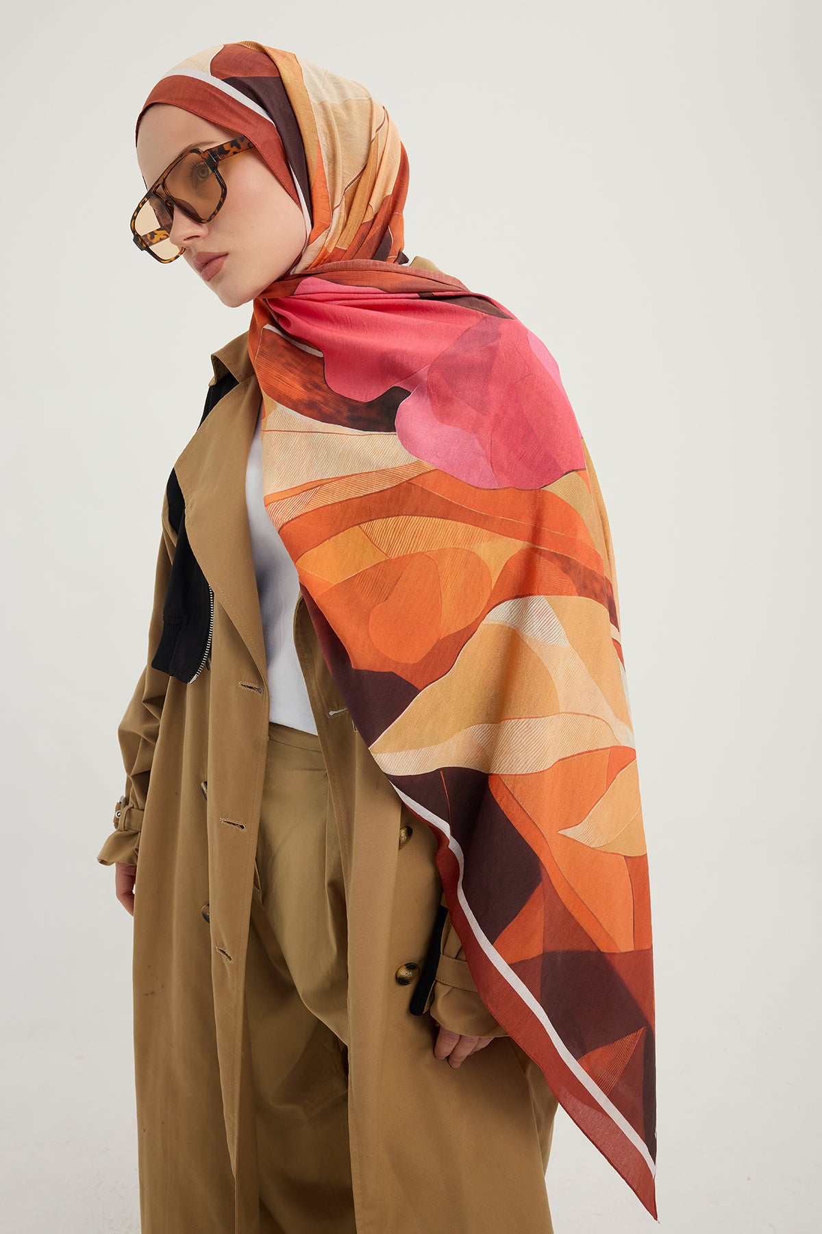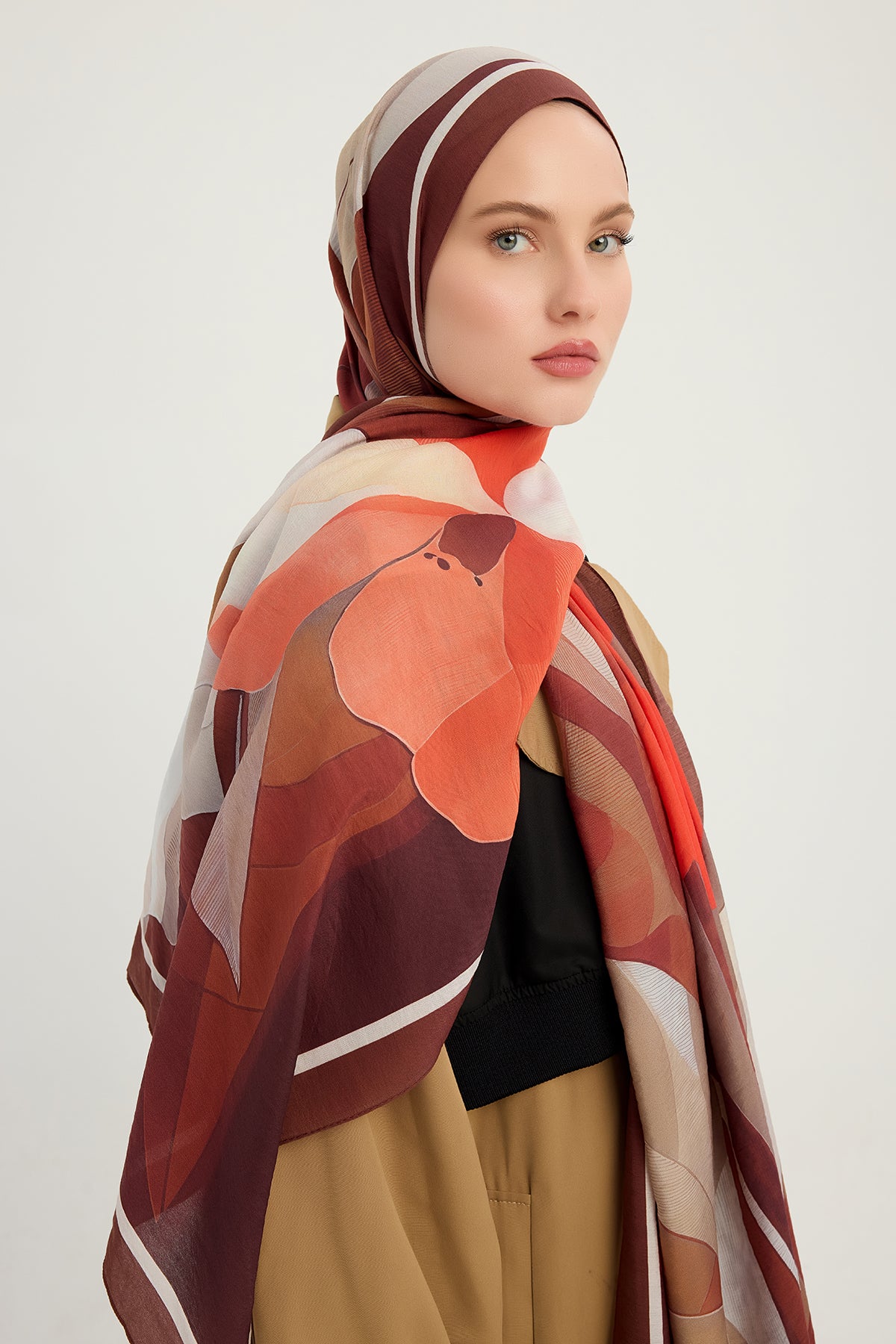 Vierra Desenli Şal Işıklı Çiçekler Kahverengi