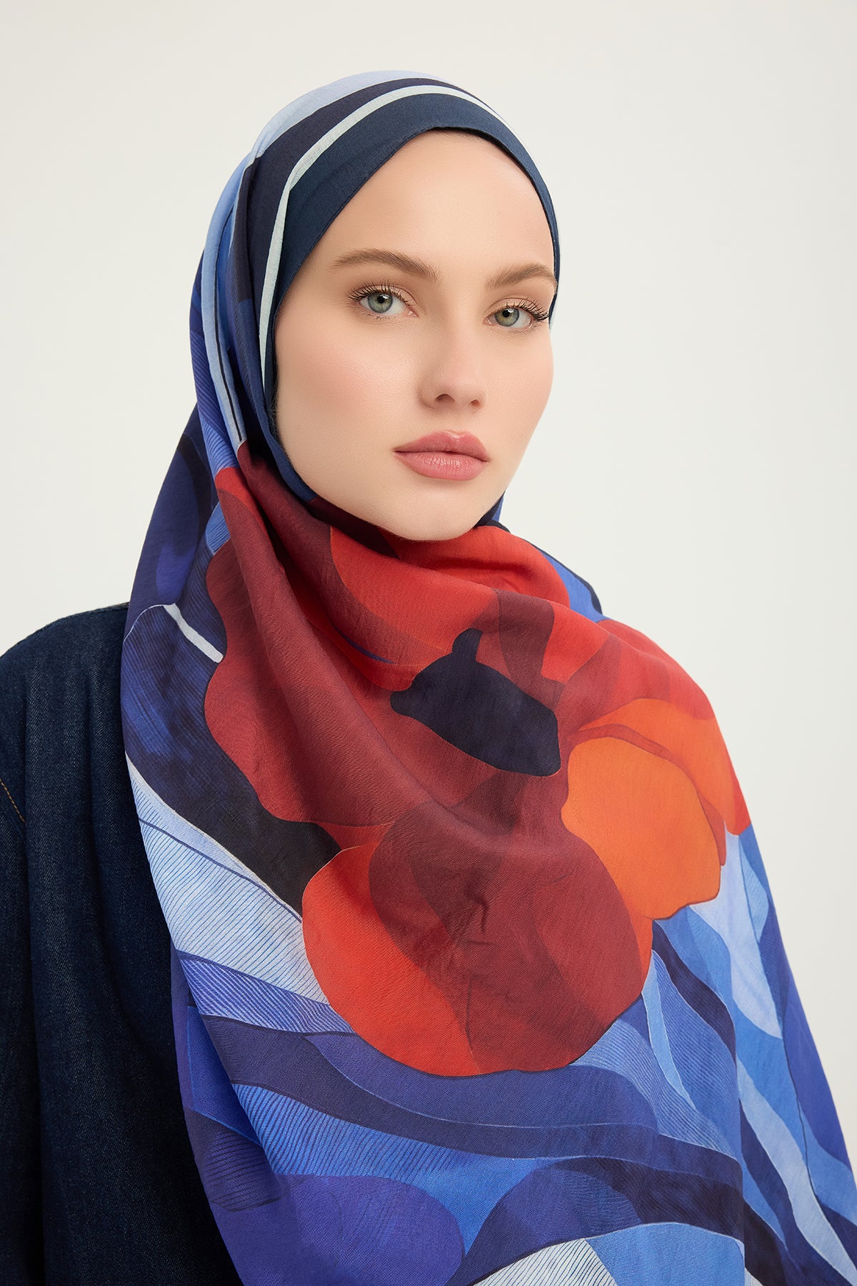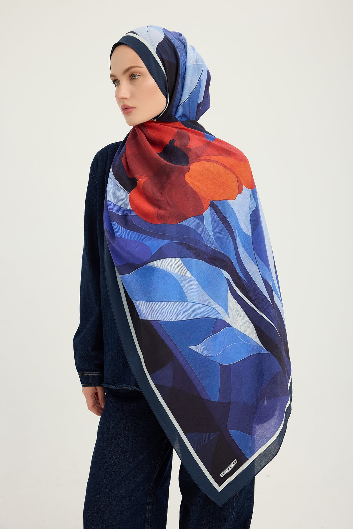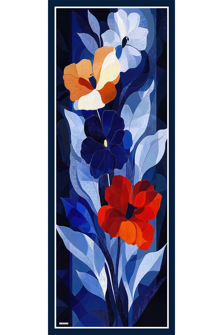 Vierra Desenli Şal Işıklı Çiçekler Lacivert