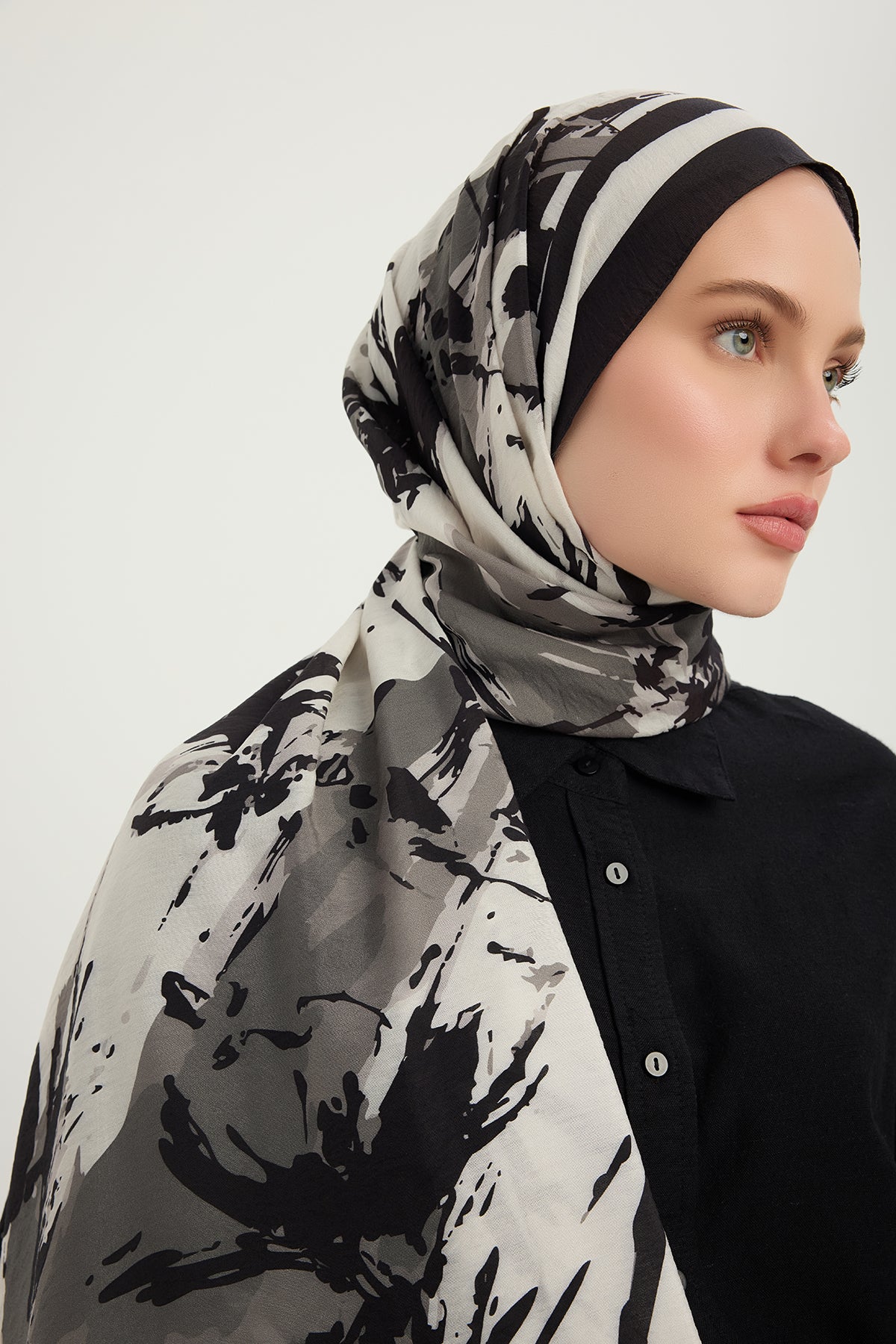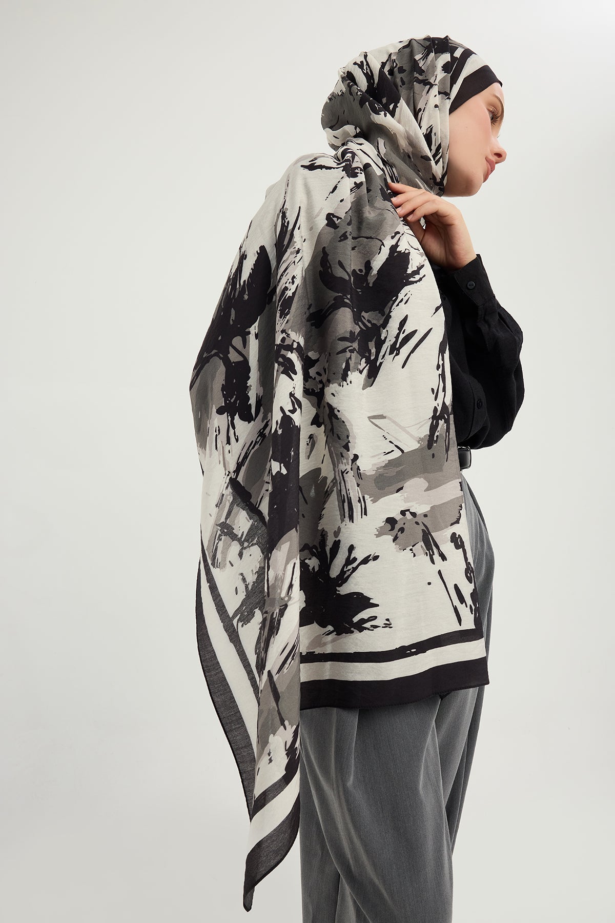 Vierra Desenli Şal Özgür Fırçalar Gri
