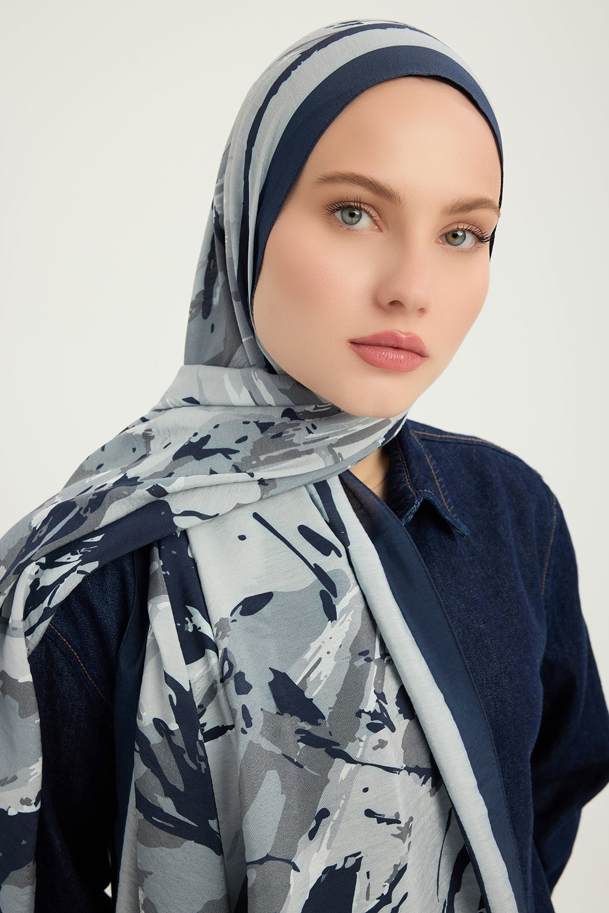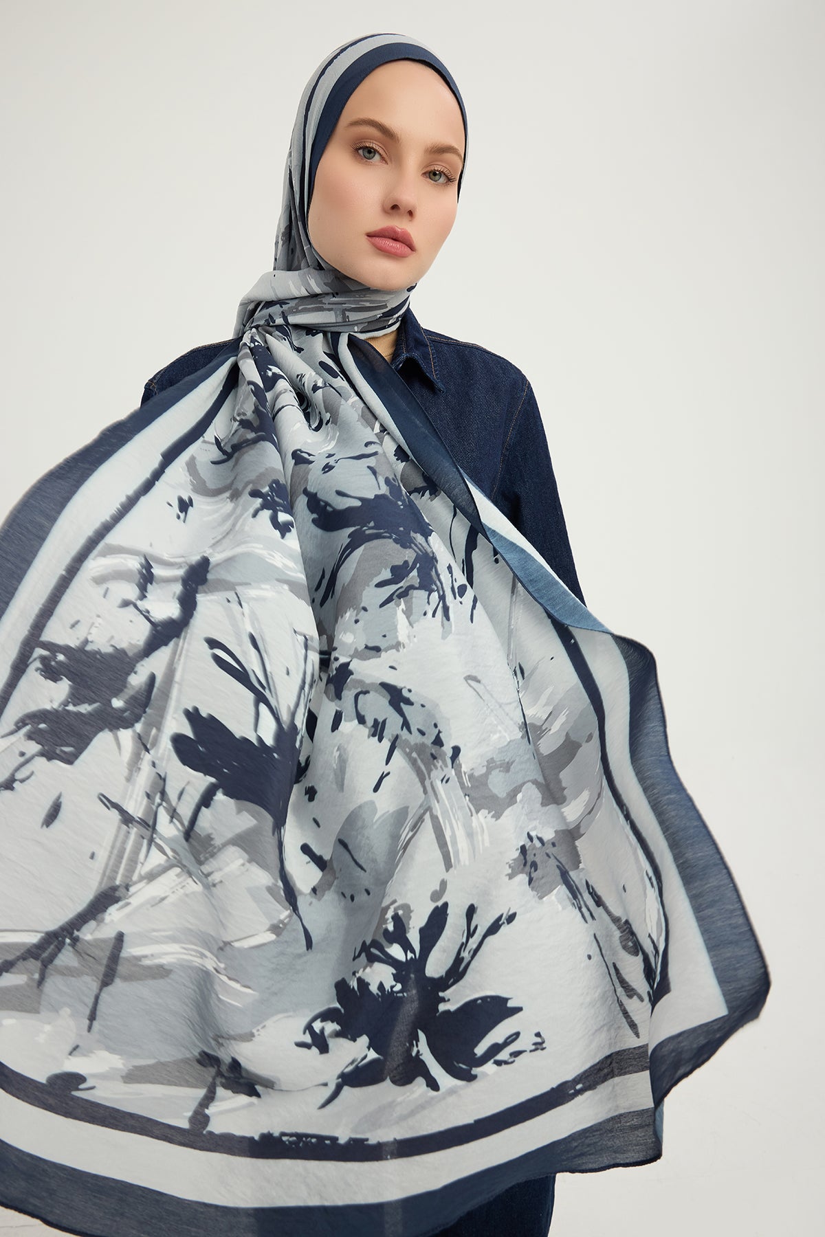 Vierra Desenli Şal Özgür Fırçalar Lacivert