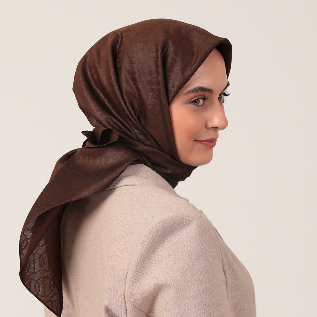• Yün İpek Eşarp - Zincir Desen - Kahverengi
